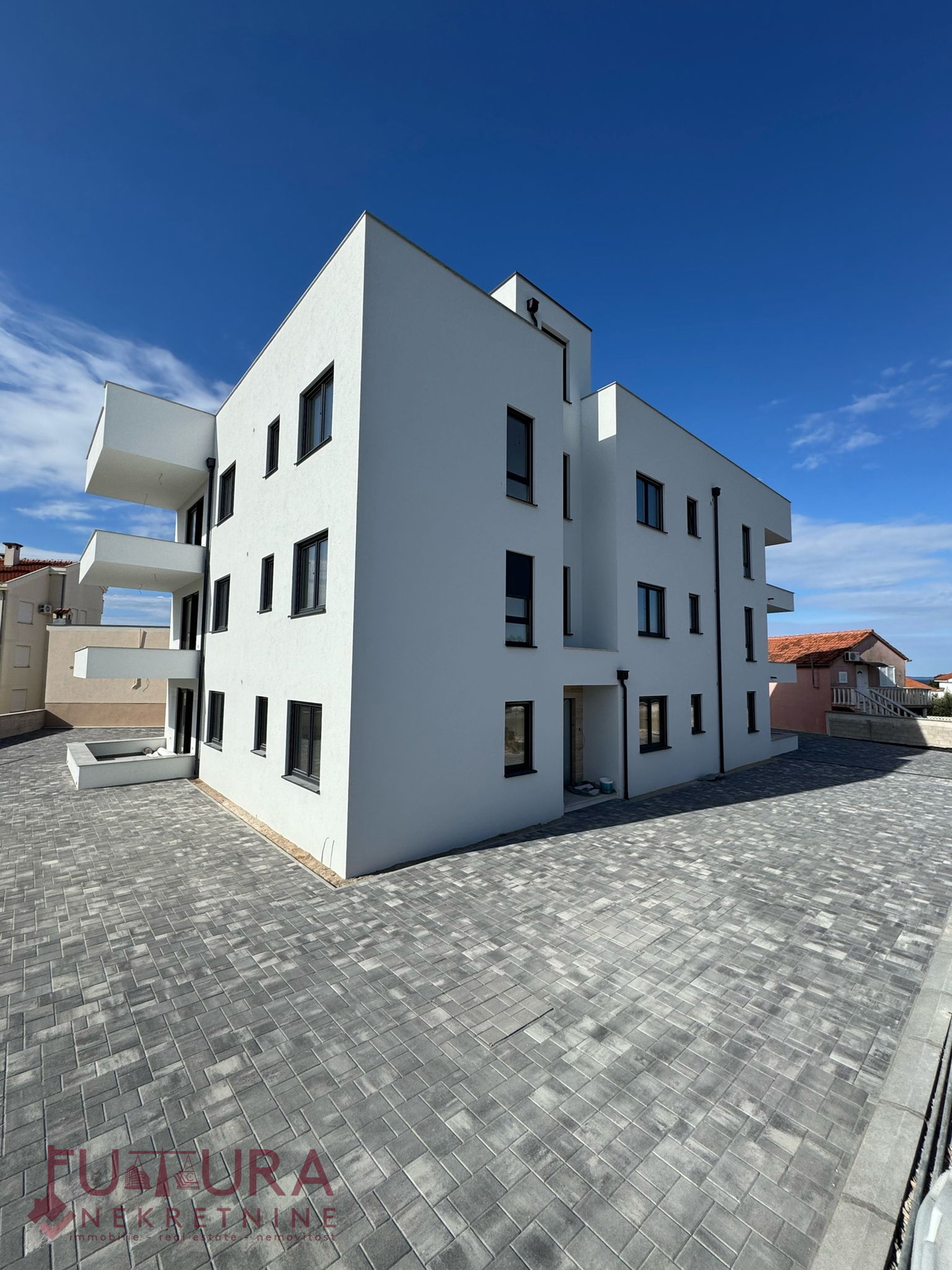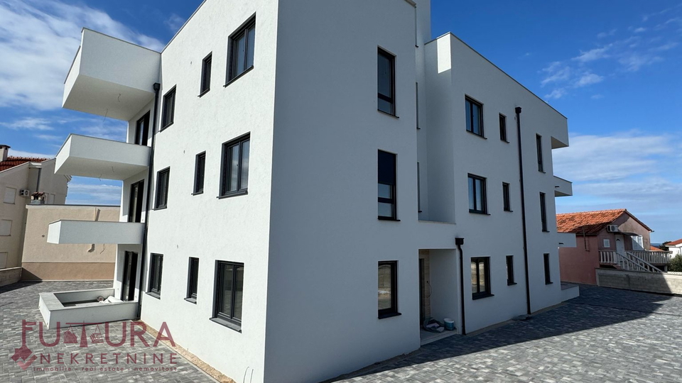 Zadar - Petrčane, verkauft wird eine Zweizimmerwohnung mit 96,79 m² im Erdgeschoss eines Wohngebäudes mit insgesamt sechs Wohnungen im Bau, geplante Fertigstellung Sommer 2025.