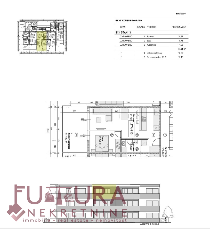 Grundriss des Apartments mit der Bezeichnung S13 ansehen.