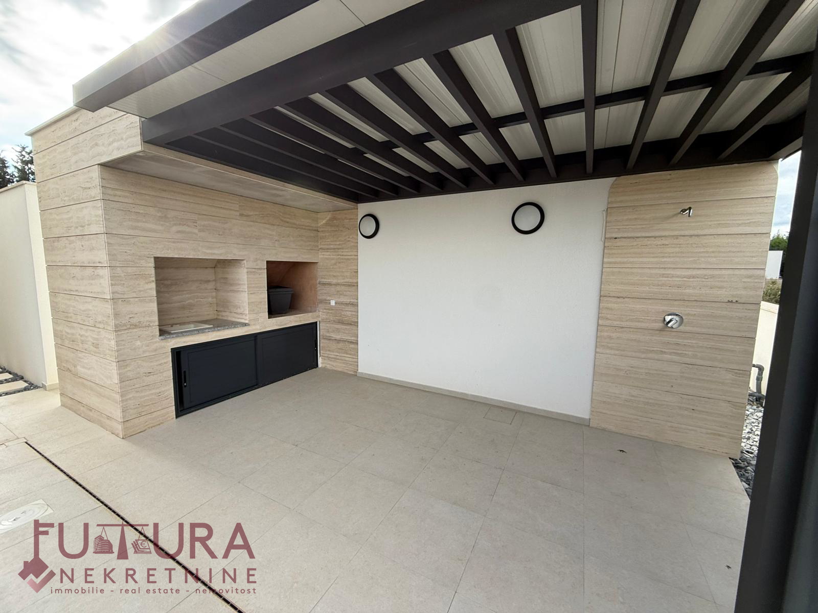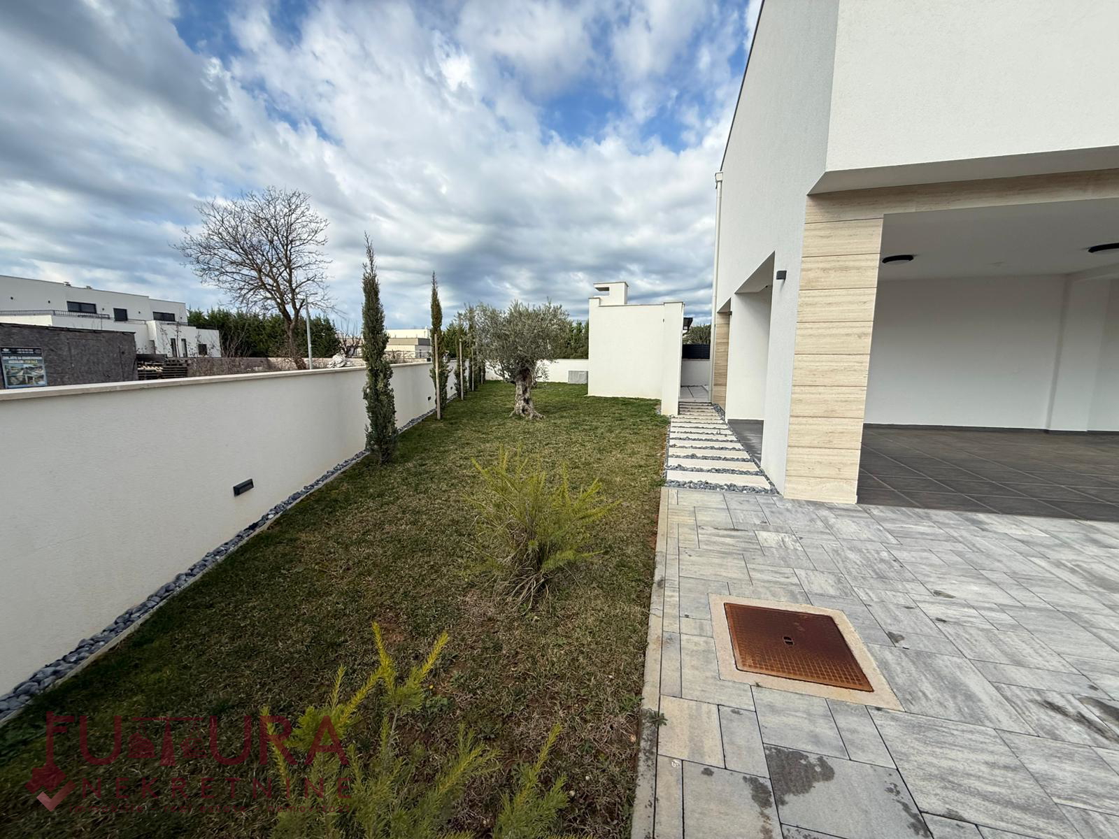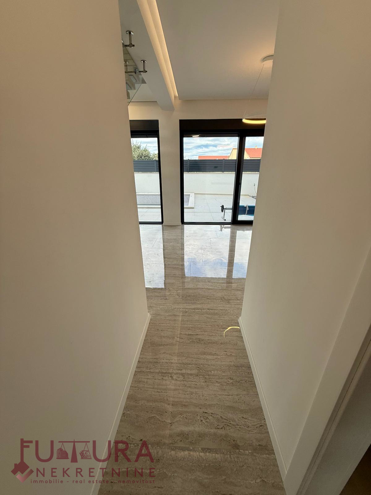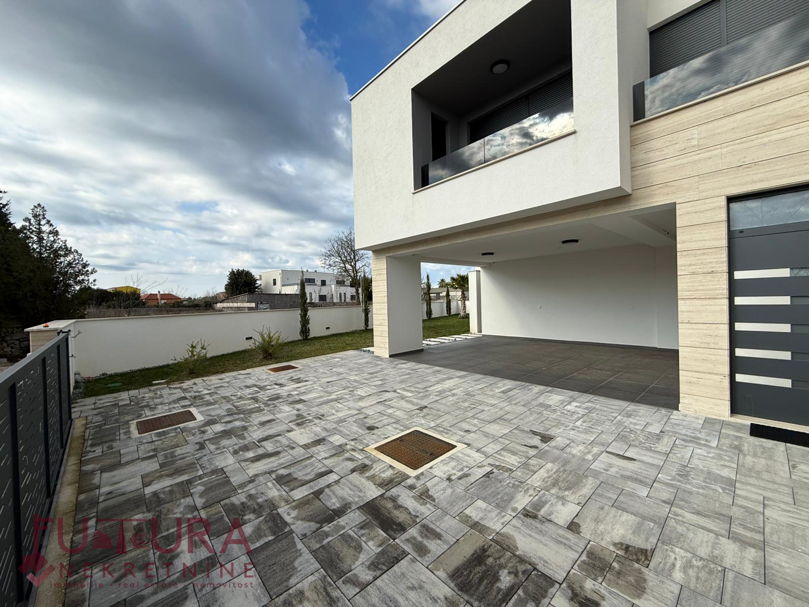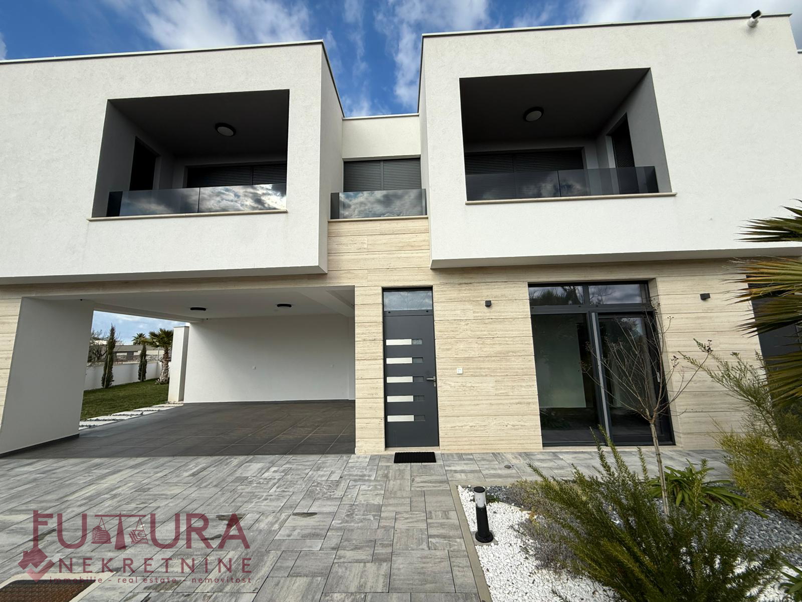 Zadar - Zaton, es wird ein Doppelhaus mit 228,49 m2 Wohnfläche und 315 m2 Grundstück verkauft, erbaut im Jahr 2025 auf einem Grundstück von 517 m2. Hochwertige Bauweise mit Ziegel-Thermoblock, 15 cm dicke Styropor-Fassade, Aluminiumfenster mit elektrischen Rollläden, dreifach verglast und mit Insektenschutzgittern, einbruchhemmende Eingangstür, Böden aus Parkett und Fliesen, Heizung und Kühlung mittels Wärmepumpe, im gesamten Haus Fußbodenheizung über Wärmepumpe, das Haus verfügt über einen Schornstein und Kamin usw.