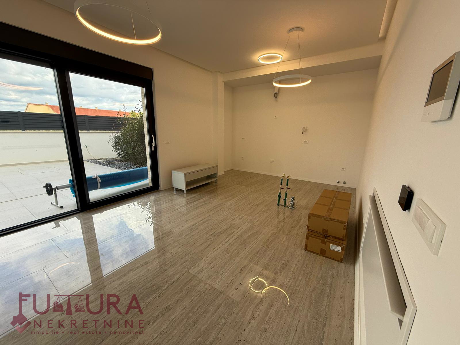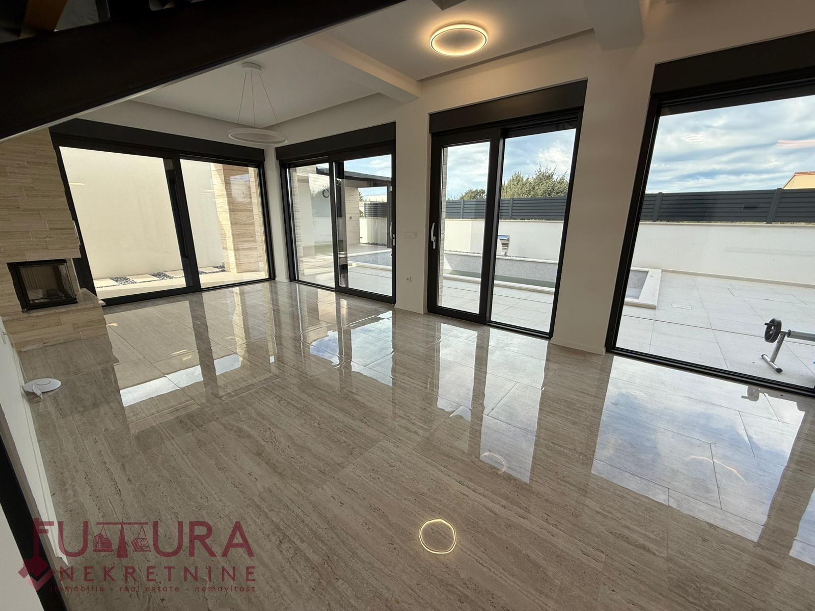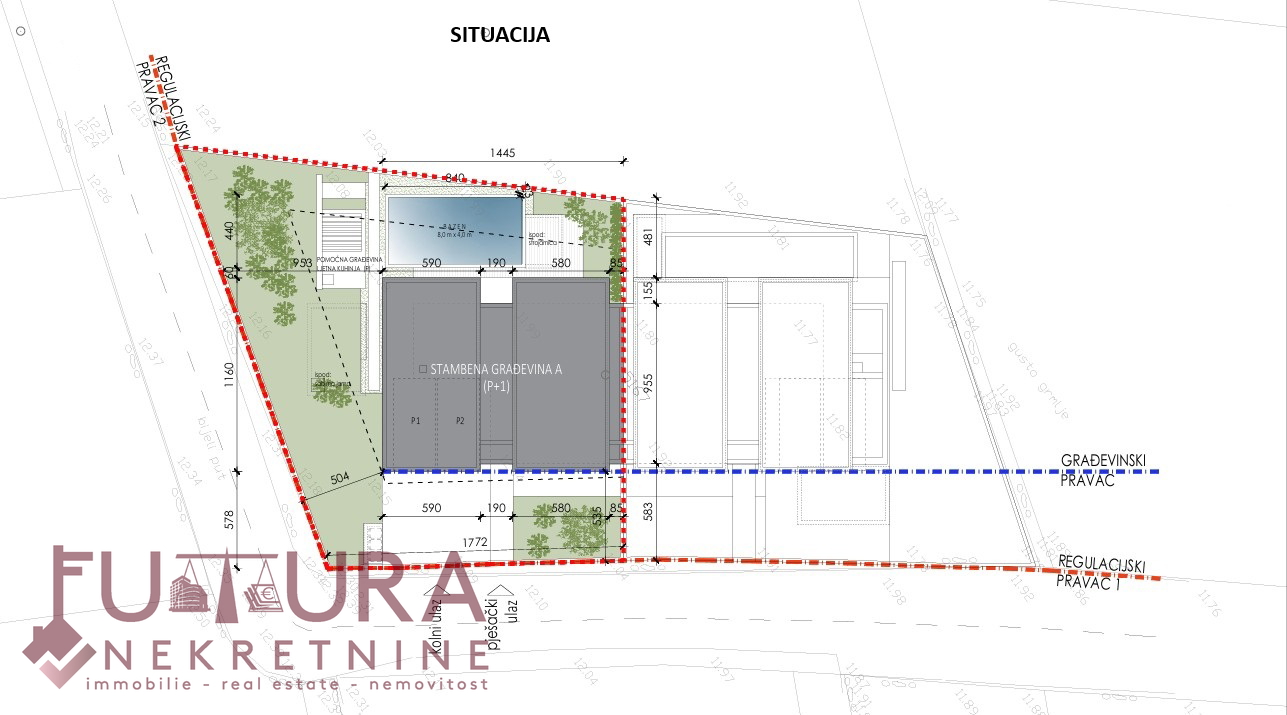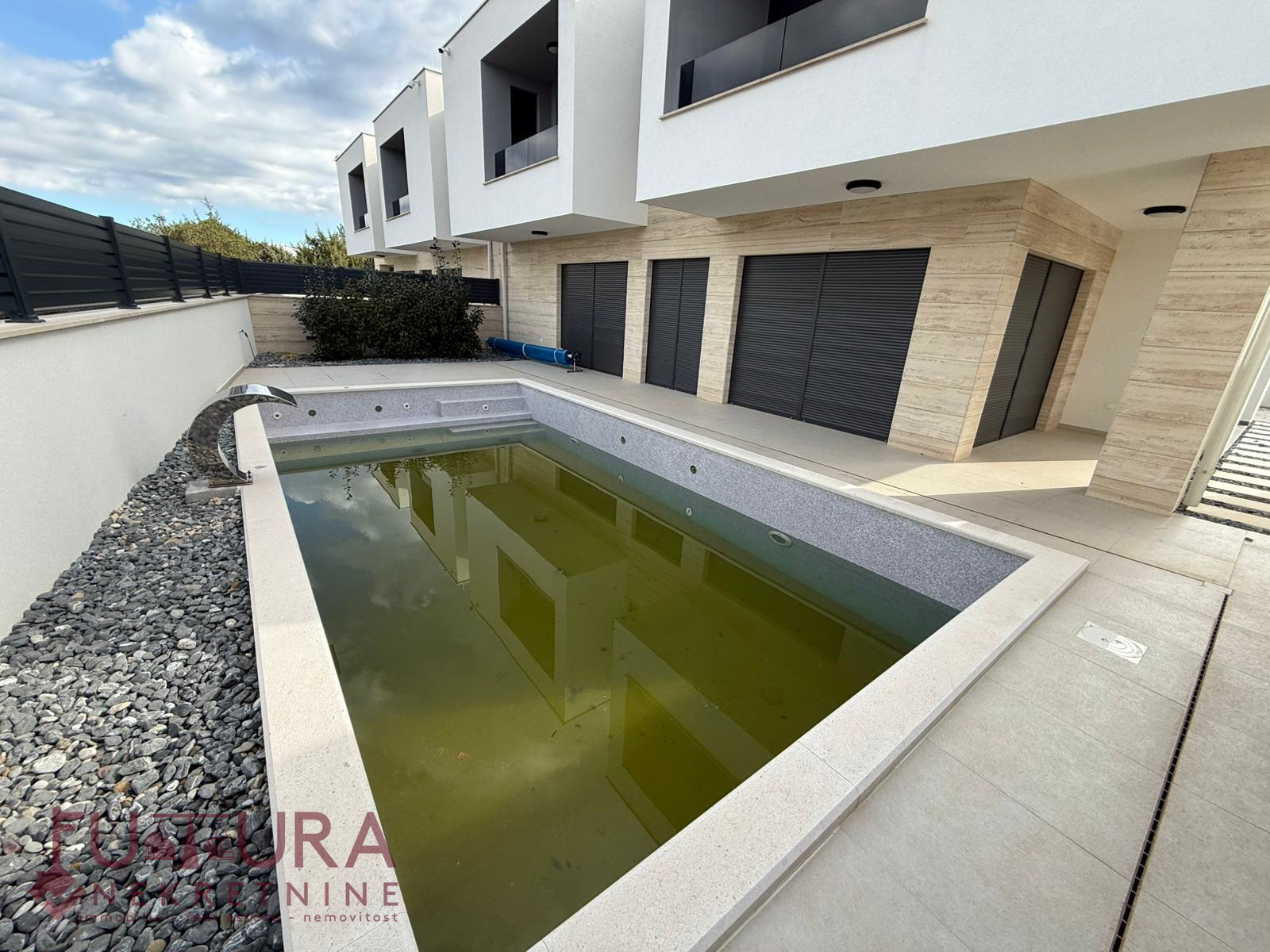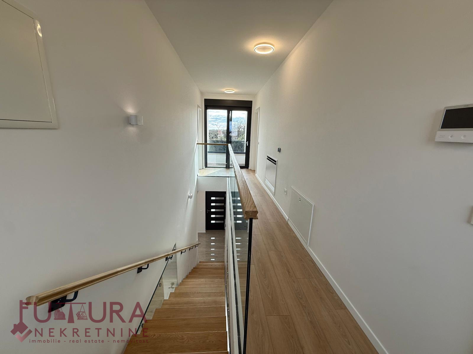 Zadar - Zaton, es wird ein Doppelhaus mit 228,49 m2 Wohnfläche und 315 m2 Grundstück verkauft, erbaut im Jahr 2025 auf einem Grundstück von 517 m2. Hochwertige Bauweise mit Ziegel-Thermoblock, 15 cm dicke Styropor-Fassade, Aluminiumfenster mit elektrischen Rollläden, dreifach verglast und mit Insektenschutzgittern, einbruchhemmende Eingangstür, Böden aus Parkett und Fliesen, Heizung und Kühlung mittels Wärmepumpe, im gesamten Haus Fußbodenheizung über Wärmepumpe, das Haus verfügt über einen Schornstein und Kamin usw.