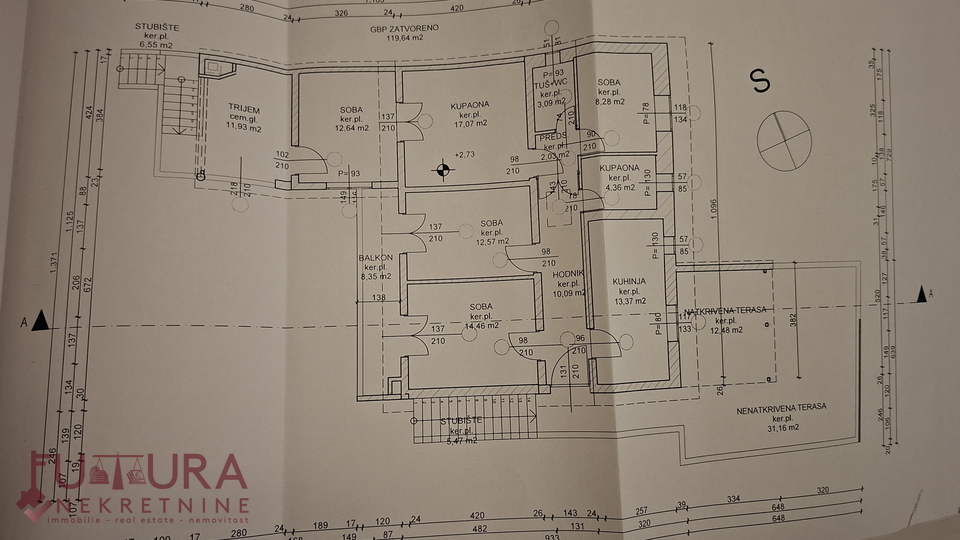 Obergeschoss: vier Schlafzimmer, zwei Küchen, Flur, zwei Badezimmer, Balkon, Terrasse und Veranda.