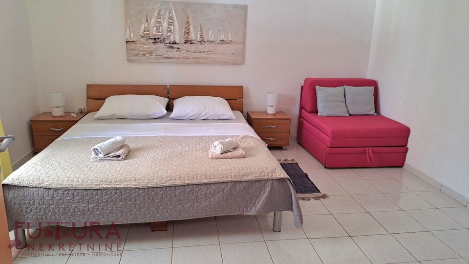 Pag - Povljana, es wird ein freistehendes mehrstöckiges Haus mit 267,86 m2 Wohnfläche und 322 m2 Grundstück verkauft, erbaut im Jahr 1980 auf einem 520 m2 großen Grundstück. Das Haus ist komplett möbliert.