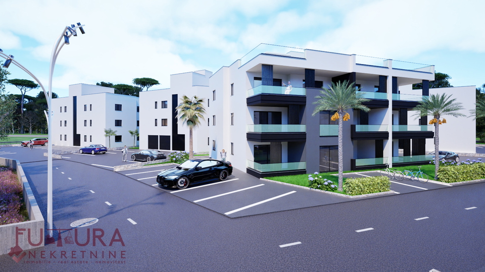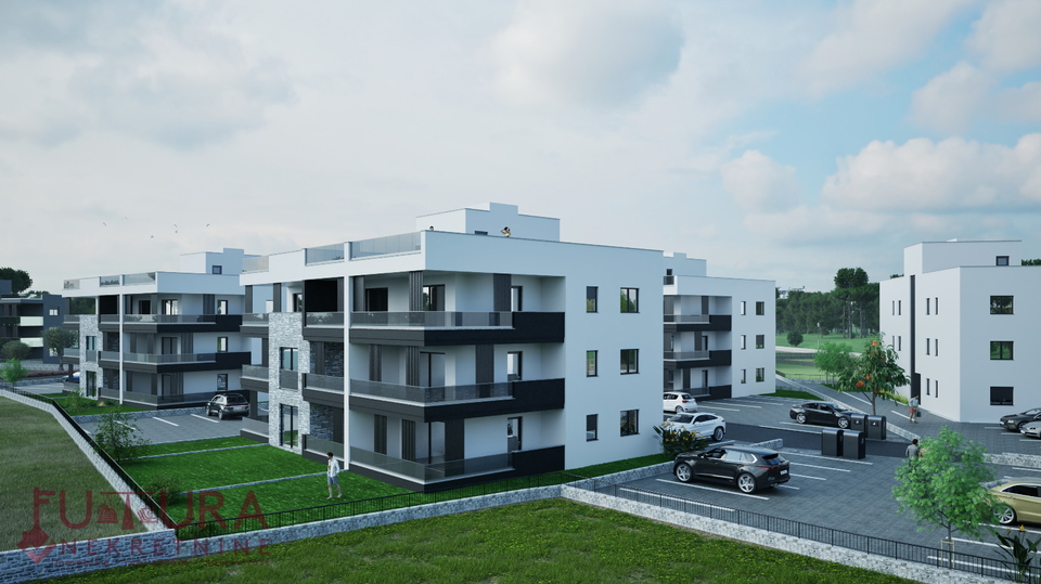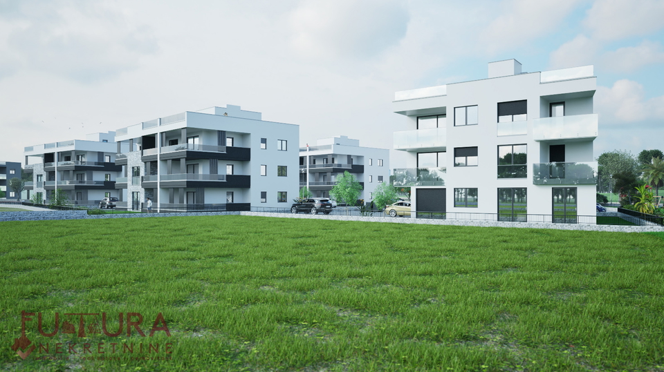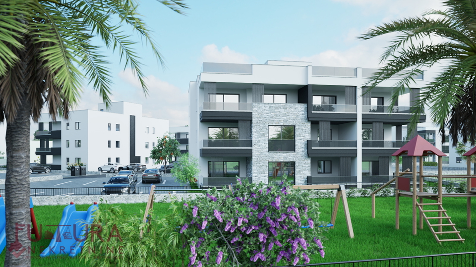 Zadar - Crvene Kuće, a two-bedroom apartment of 85.91 m2 is for sale on the first floor of a residential building under construction with a total of six apartments, planned move-in in 2026.