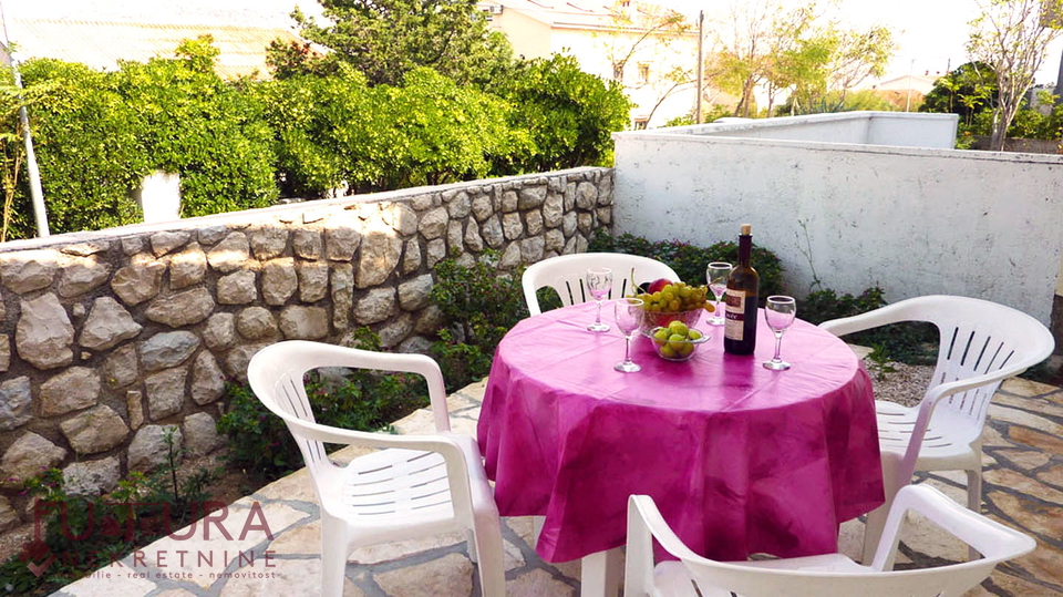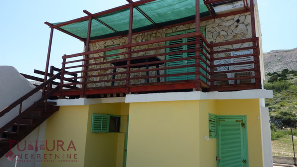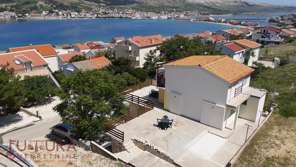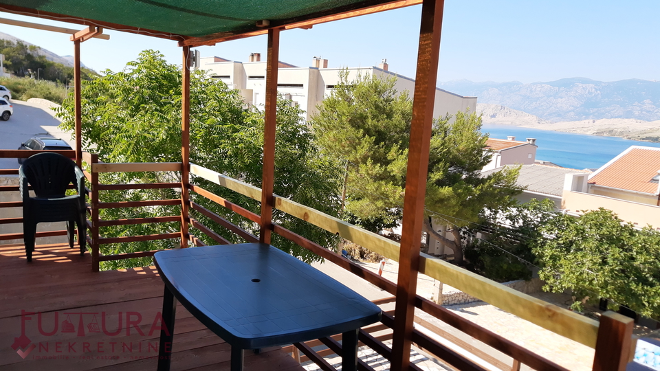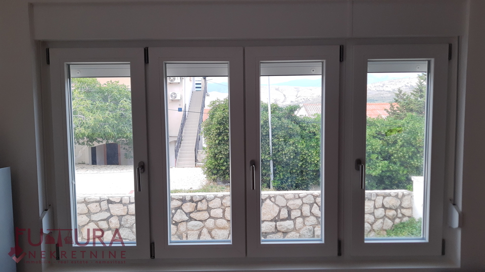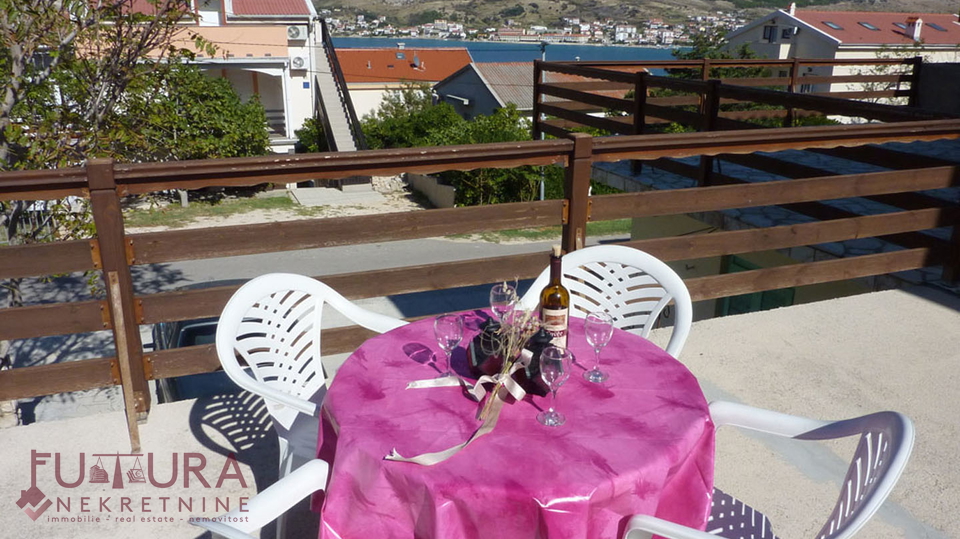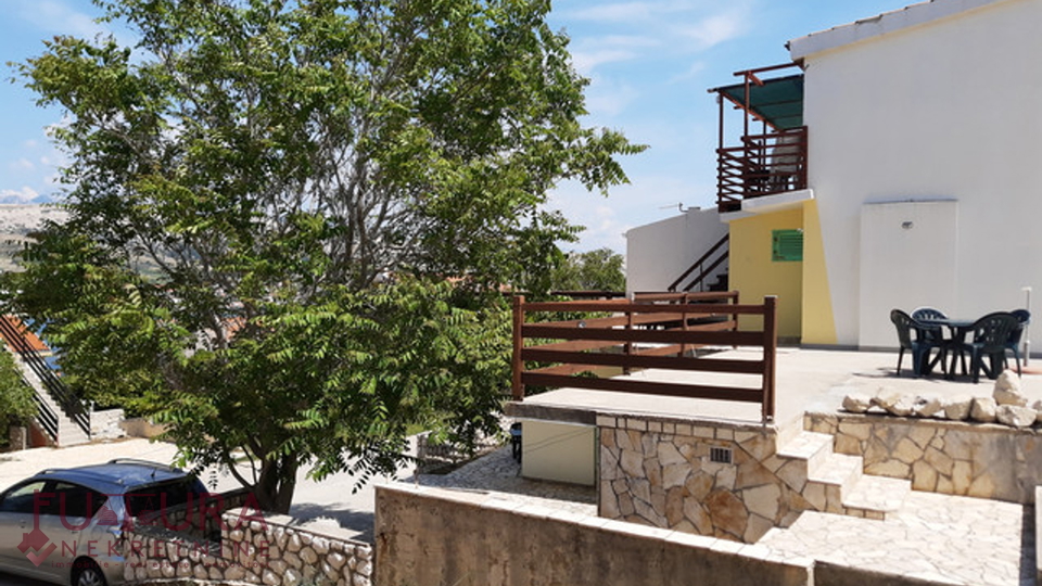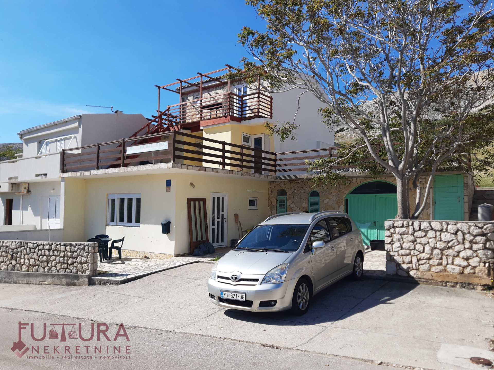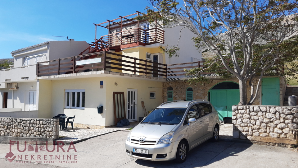 Pag, a semi-detached two-story house with a net usable area of 246.86 m2 on a plot of 326.5 m2, fully furnished, is for sale. There is a possibility of an extension of about 140 m2 net.