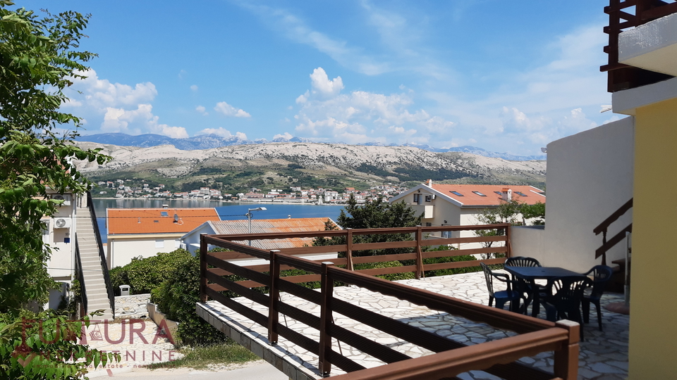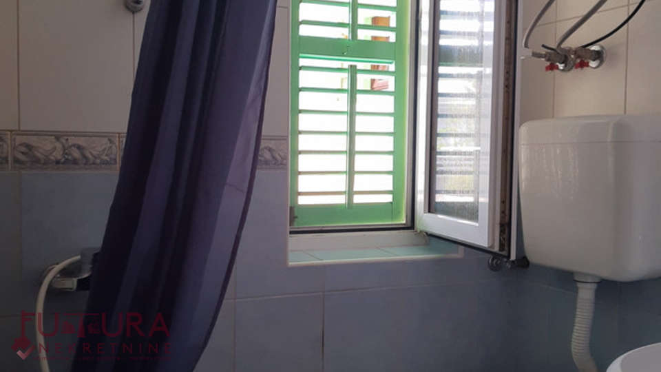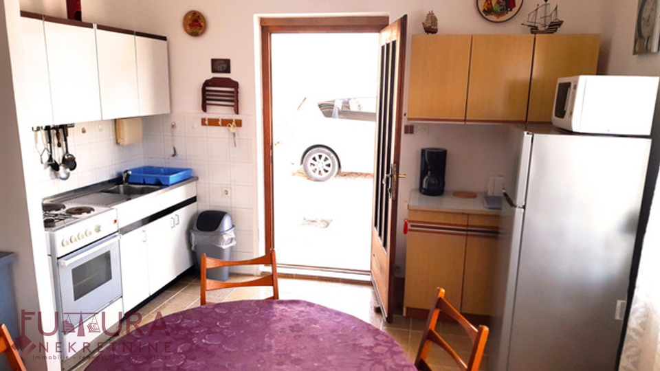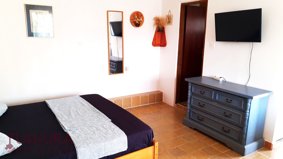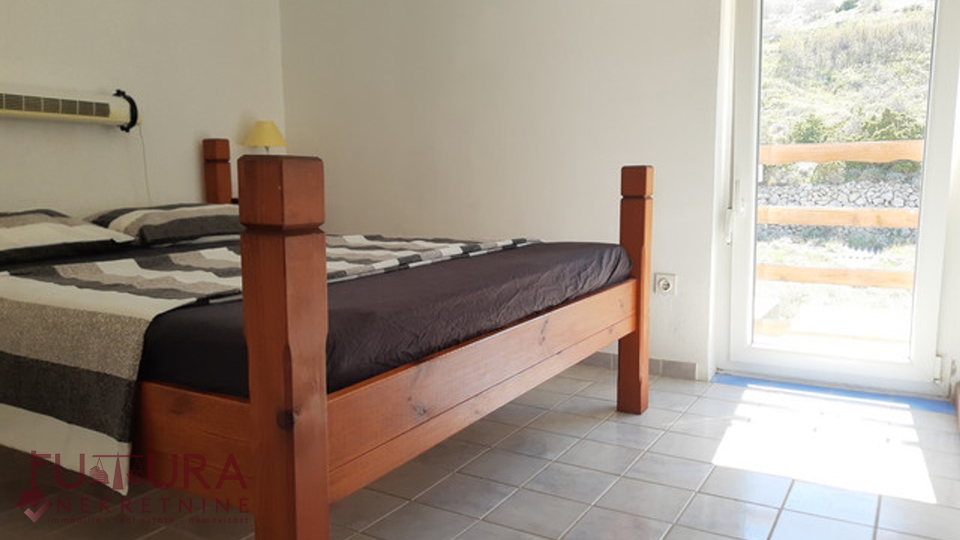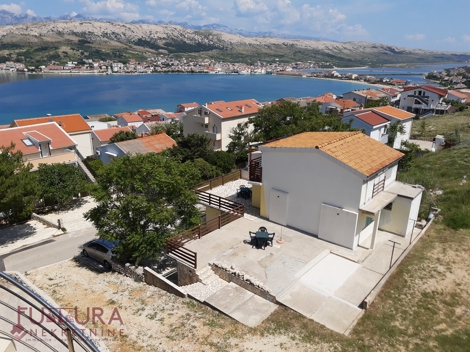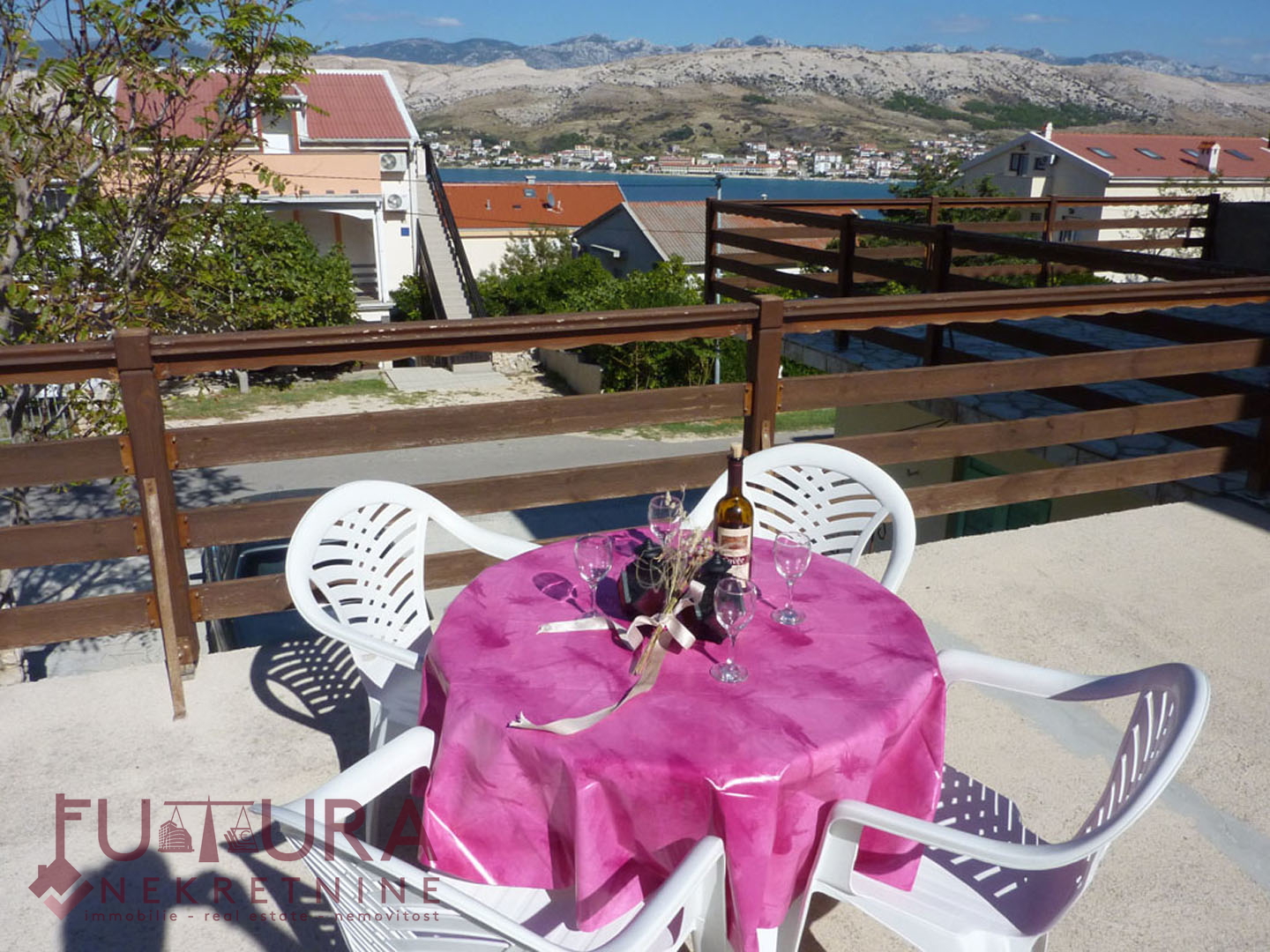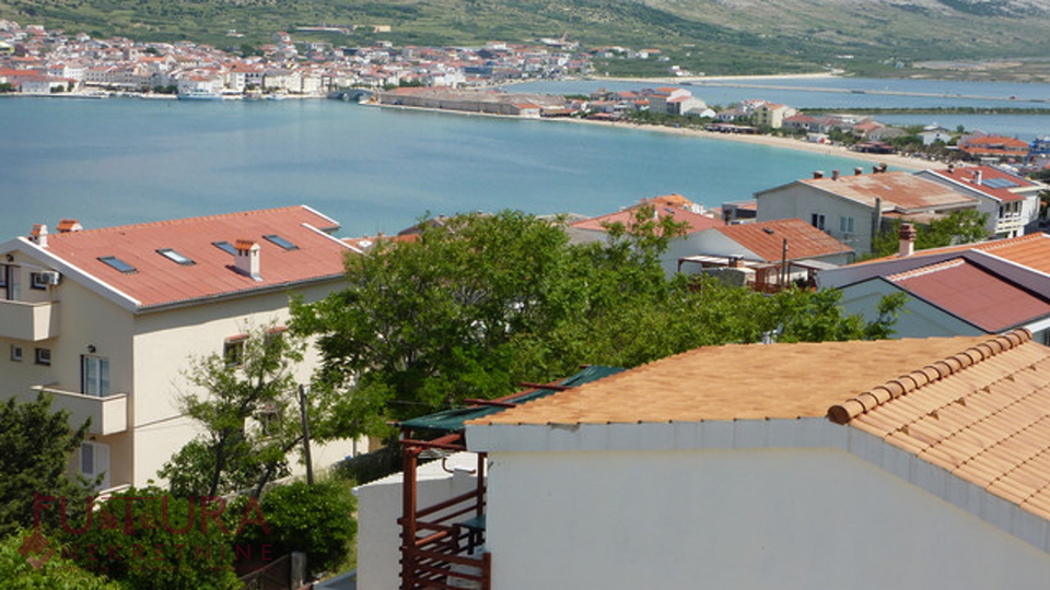 Pag, a semi-detached two-story house with a net usable area of 246.86 m2 on a plot of 326.5 m2, fully furnished, is for sale. There is a possibility of an extension of about 140 m2 net.