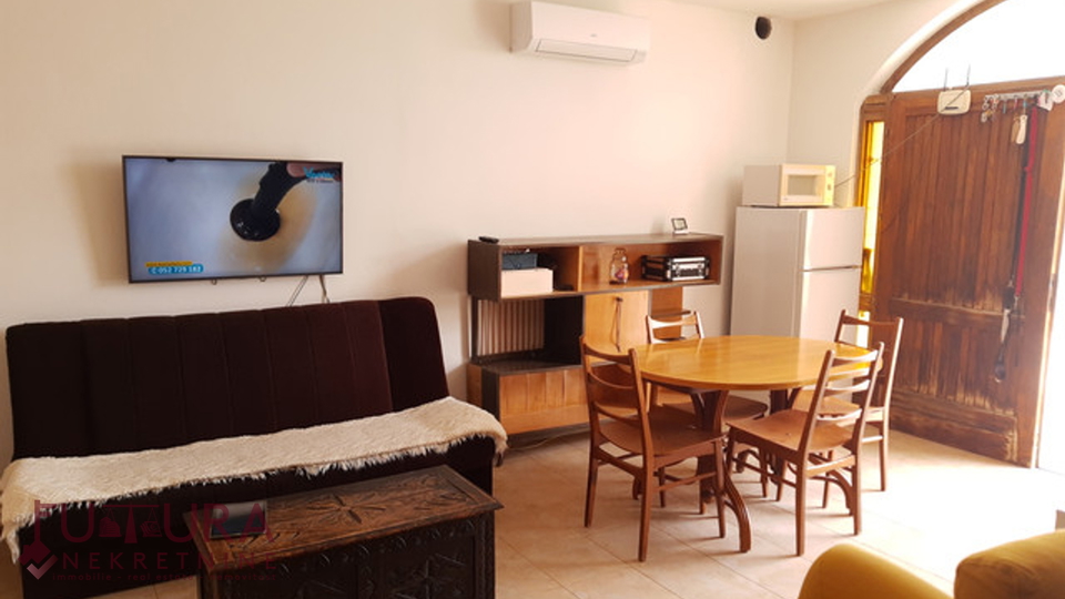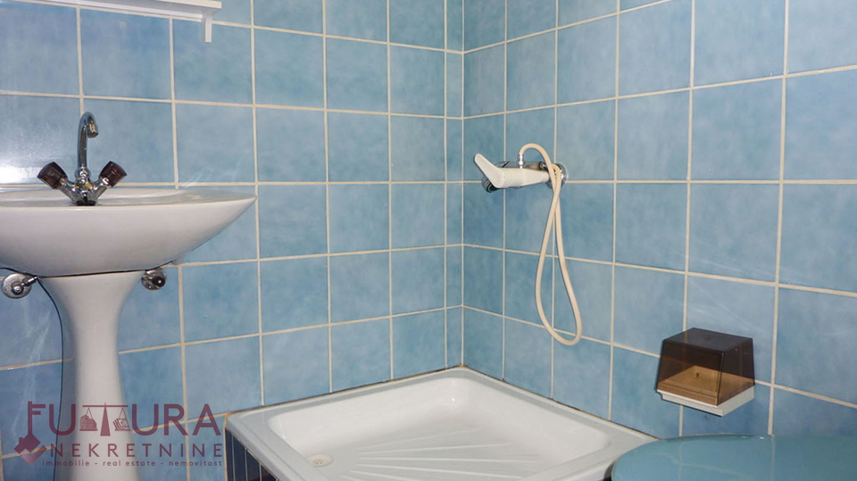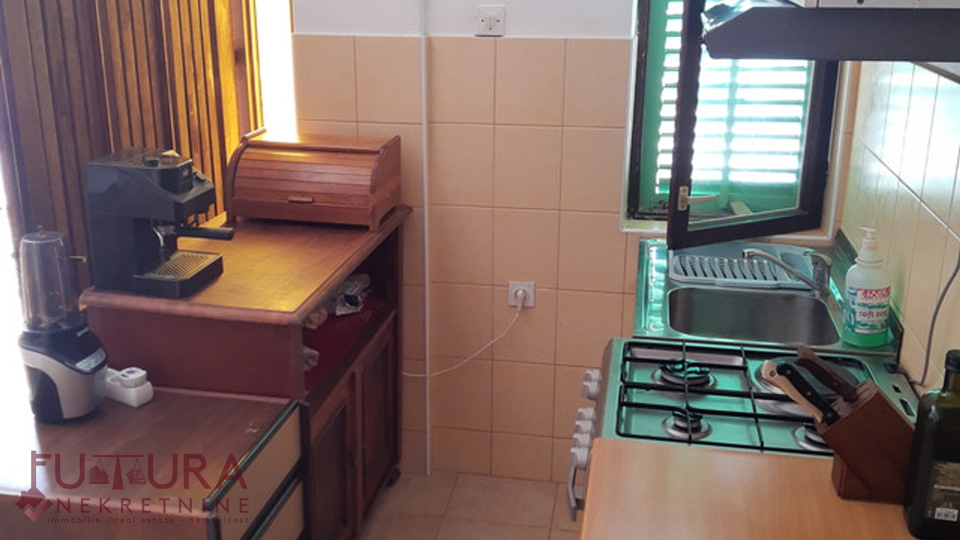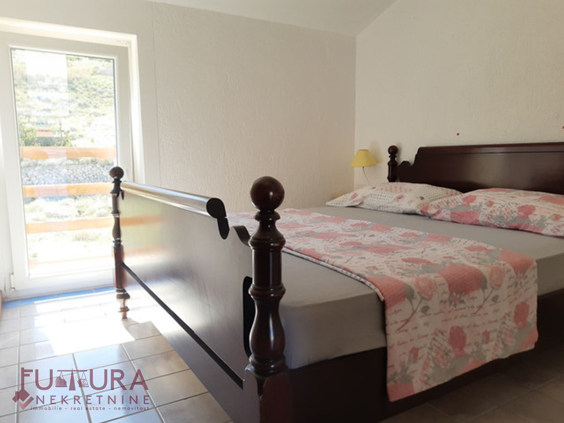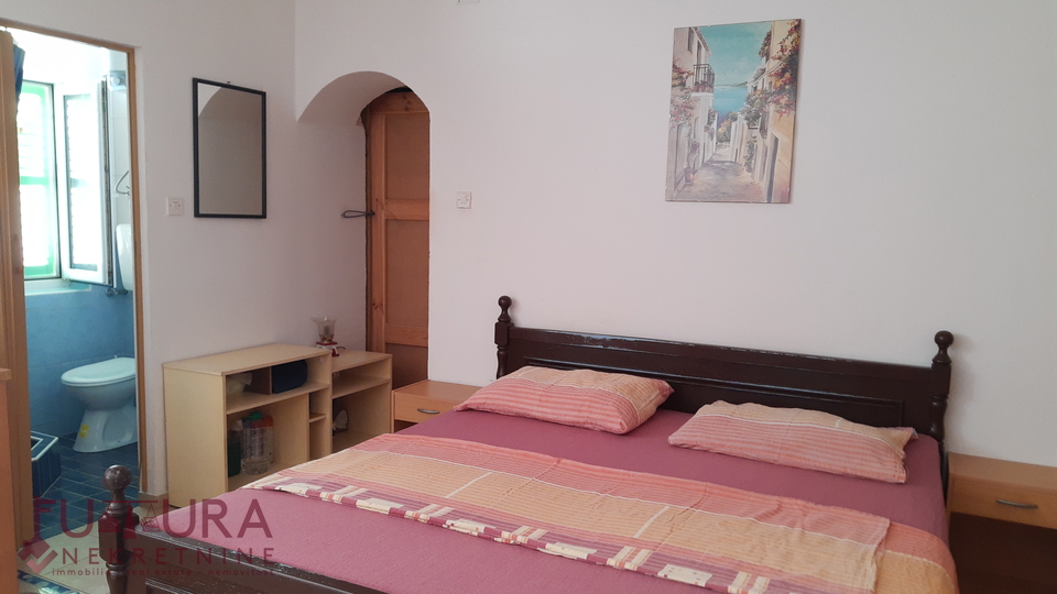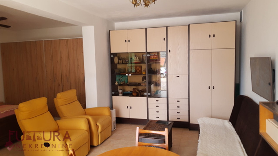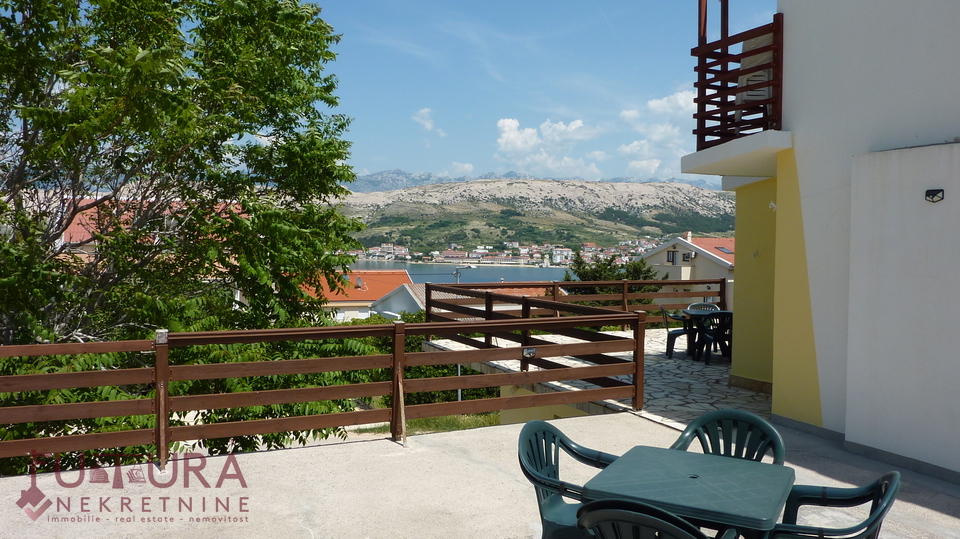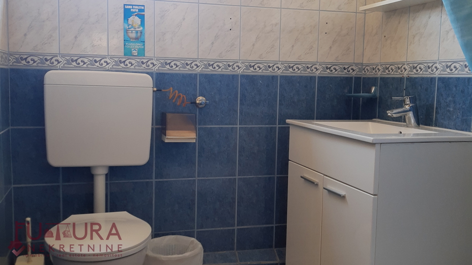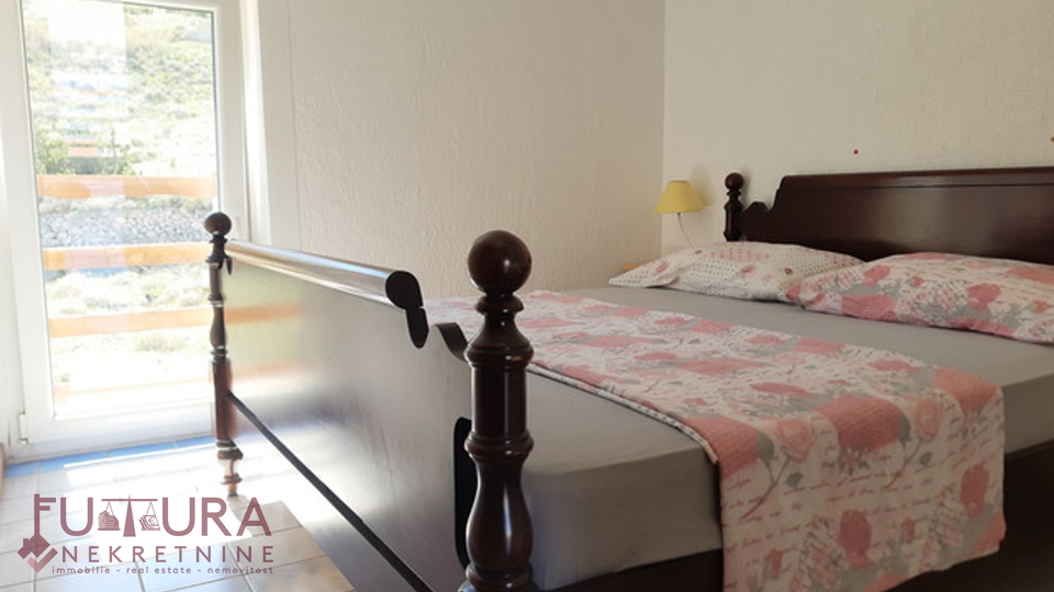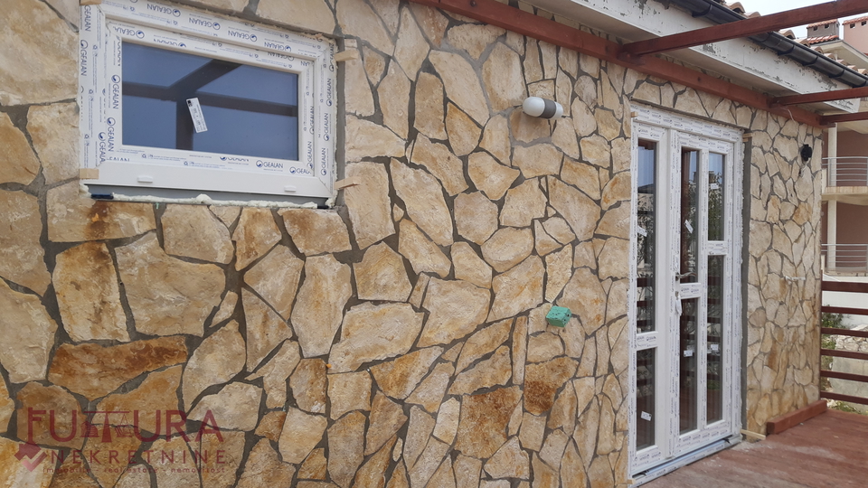 Pag, a semi-detached two-story house with a net usable area of 246.86 m2 on a plot of 326.5 m2, fully furnished, is for sale. There is a possibility of an extension of about 140 m2 net.