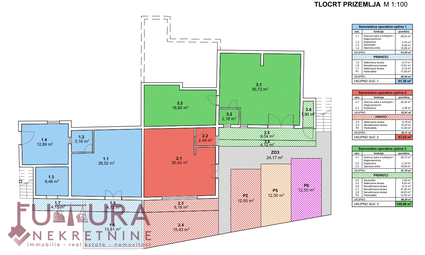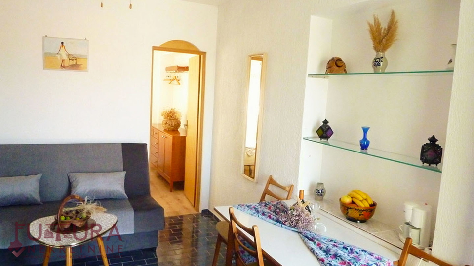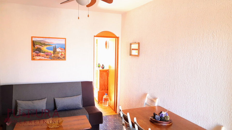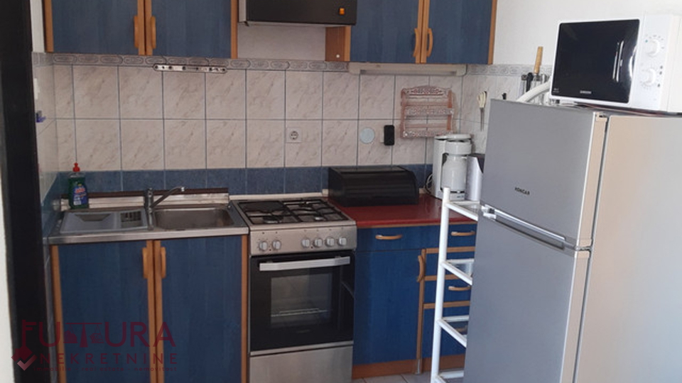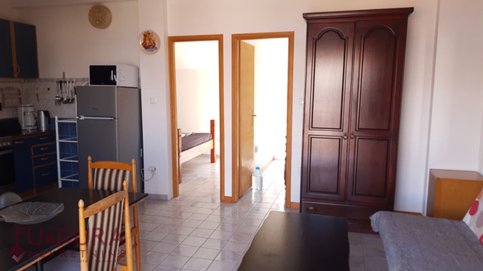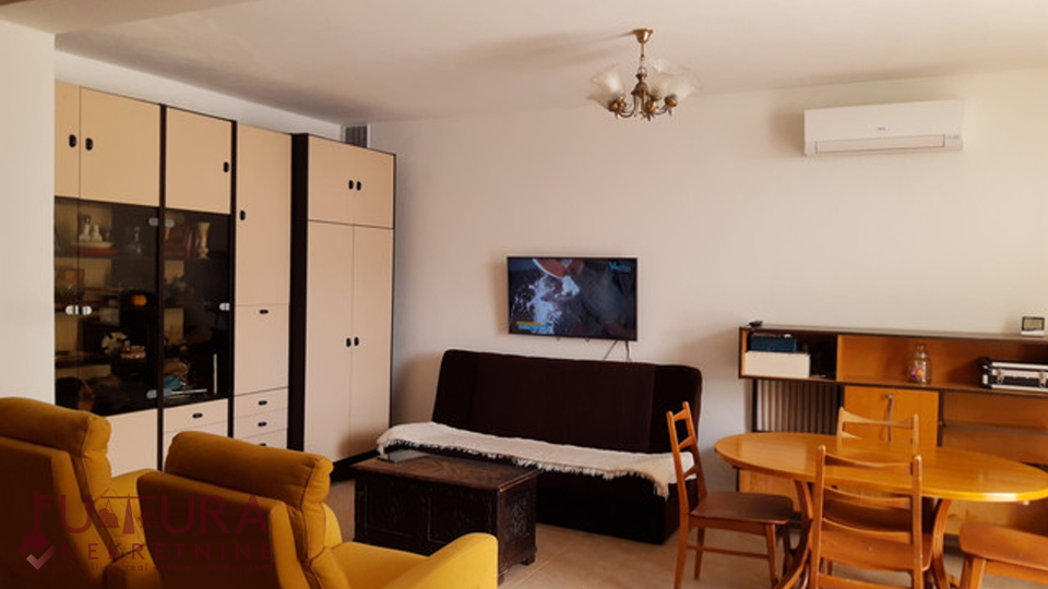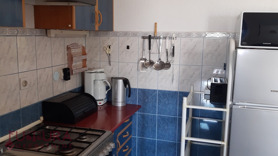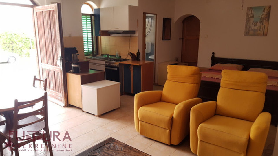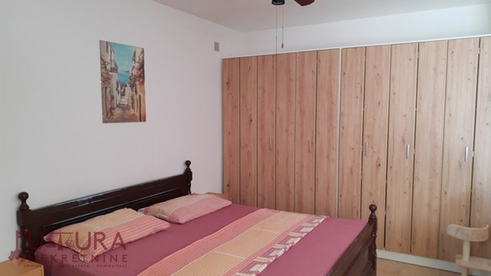 Pag, a semi-detached two-story house with a net usable area of 246.86 m2 on a plot of 326.5 m2, fully furnished, is for sale. There is a possibility of an extension of about 140 m2 net.