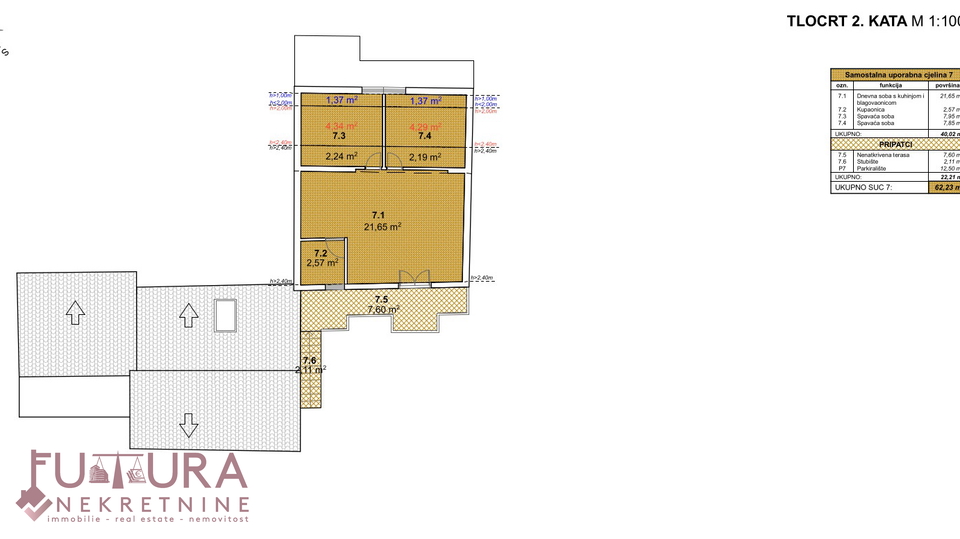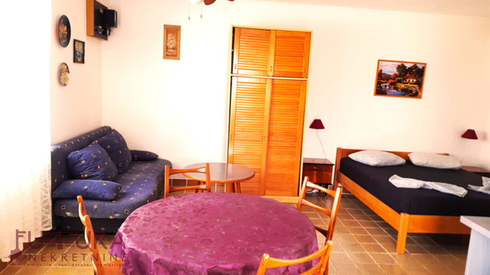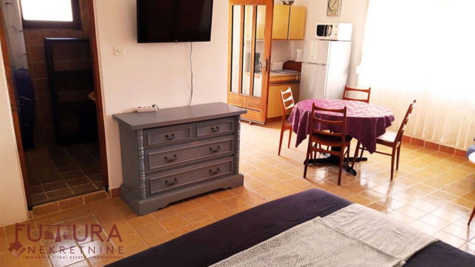 The total capacity of the property is 22 people. Prices achieved during the season are €75 for smaller 2+2 apartments and €100 for the 4+2 apartment. Income in 2023 was around €25,000 (from April to November). Renovations and renting through winter would clearly increase income. Behind the house, there is space where a mobile home could be placed (water, electricity, and sewage are exactly there), which would also generate income, and since there is a possibility of extension, at least two apartments of nearly 40 m2 could be added on the right side of the house. This would increase income to around €40,000 per season without renting to workers during winter.