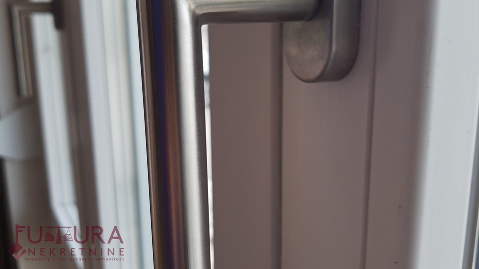 The roof is newer, Tondach Venera tiles in ochre antique color. 12 cm wool and 2 foil layers, ventilated. Everything is secured with stainless steel screws. The south and east walls have thermal insulation. Part of the façade, courtyard, and terraces are clad with Benkovac stone, with plenty of newer equipment, newer refrigerators, ovens with fans, Bosch 8kg washing machine, two boilers covering the needs of the entire building, external solar boilers, new LED TVs, WiFi router on each floor covering every part of the house and yard, beds and some furniture are made of solid wood, most mattresses are newer and high quality, replaced joinery and new stairs, joinery is Gealan S9000 with triple glazing, 15-year warranty, stainless steel handles and semi-handles, aluminum shutters.