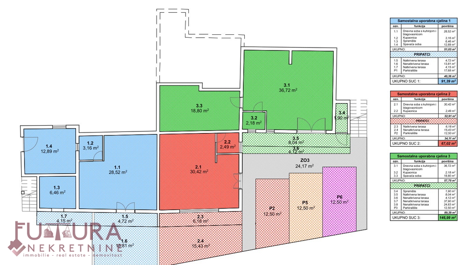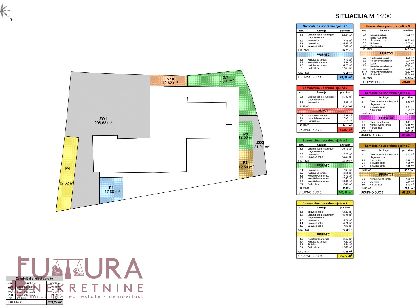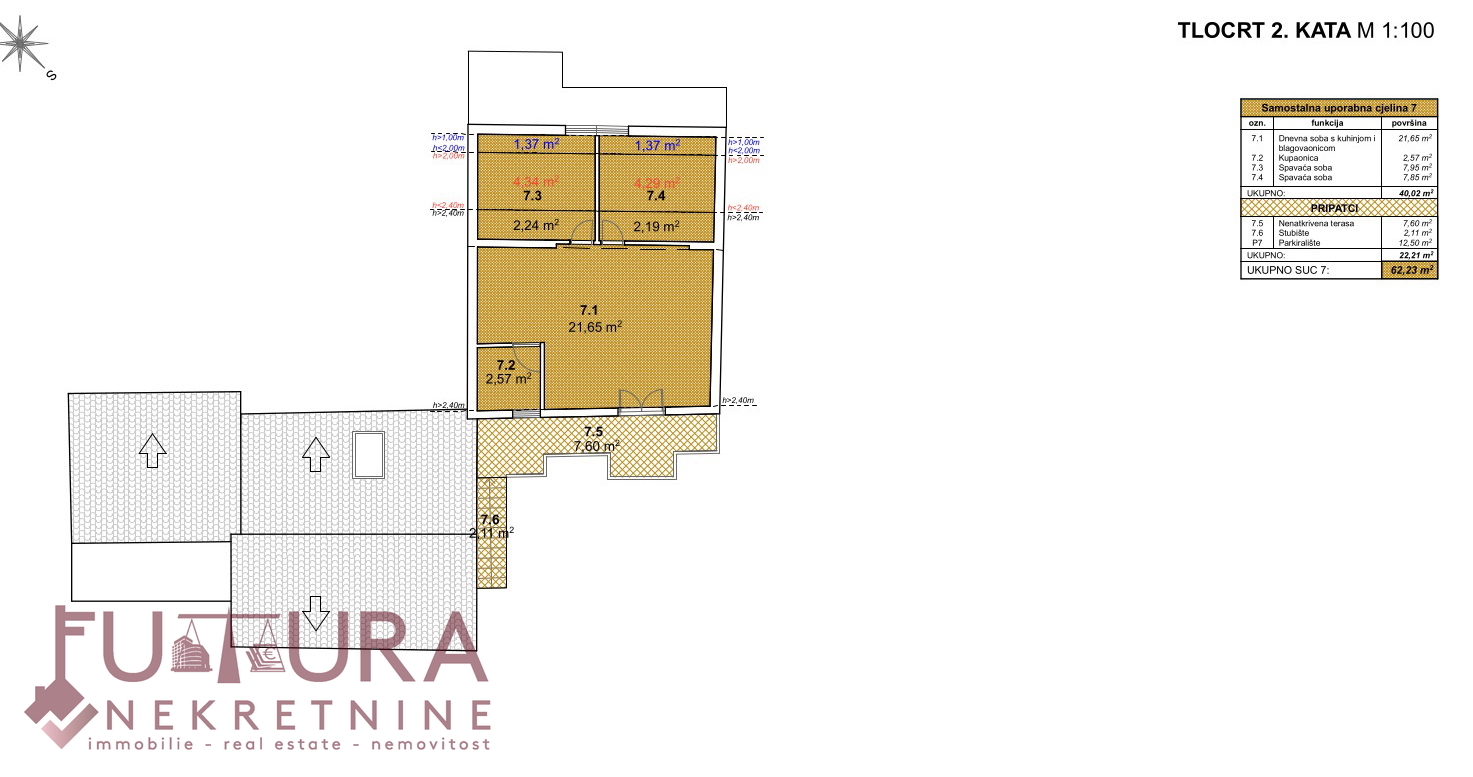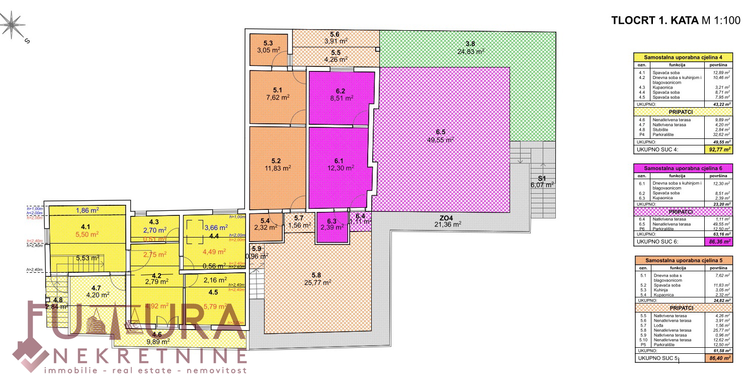 - AP5 82.26 m2 - 2+2 studio apartment with a larger storage room that can be repurposed, bathroom, and terraces on the north and south sides.