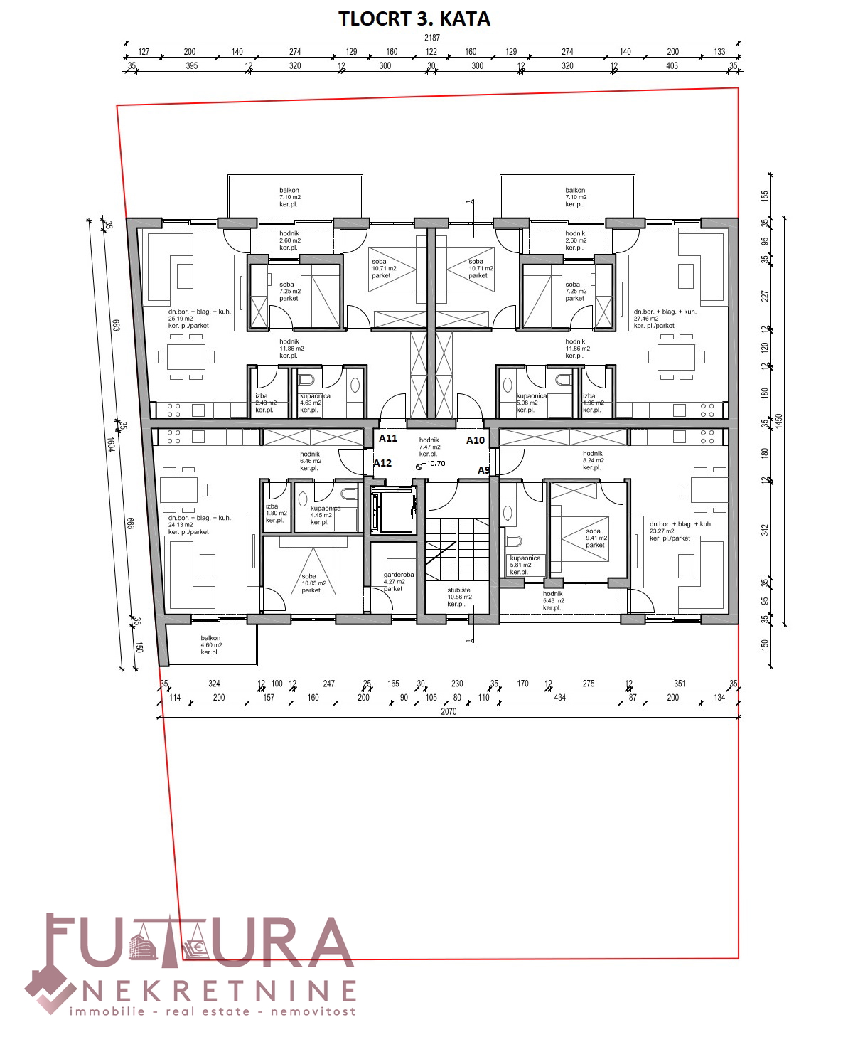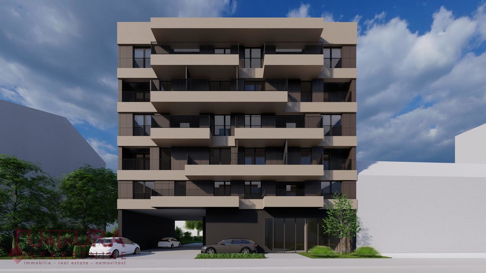 Zagreb - Donja Dubrava, two-bedroom apartment of 53.46 m2 for sale on the fifth floor of a residential building with a total of twenty apartments under construction, construction begins 03/2025 - move-in begins 2026.