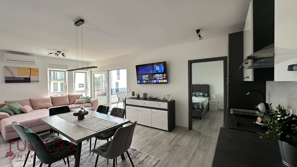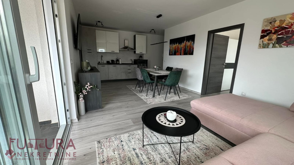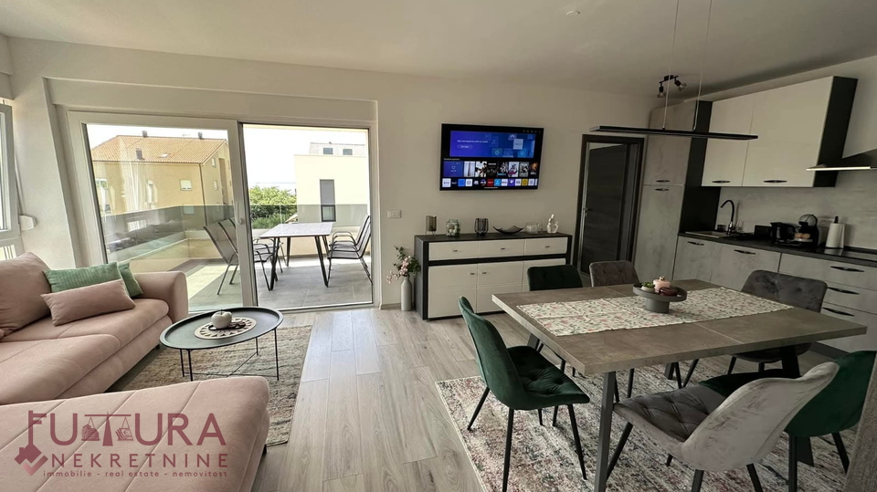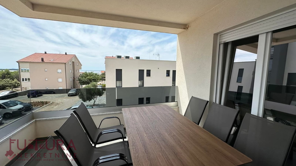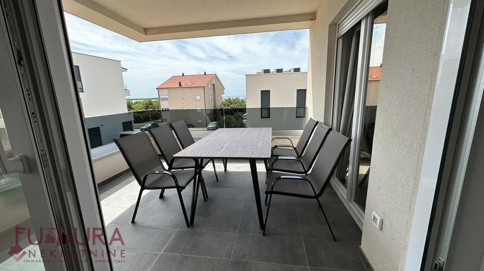 Pag - Mandre, a two-bedroom apartment of 62.95 m2 is for sale on the first floor of a residential building with a total of nine apartments, built in 2022, fully furnished.