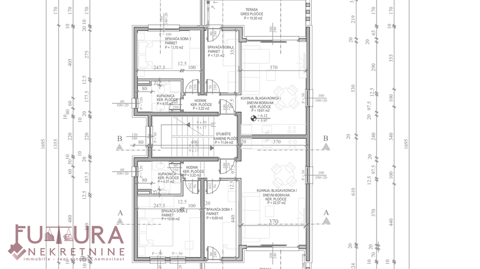 Zadar - Petrčane, a two-bedroom apartment of 92.01 m2 is for sale on the second floor of a residential building with a total of five apartments under construction, planned move-in by the end of 2026.