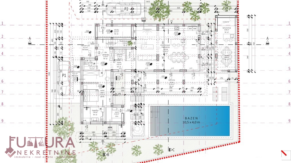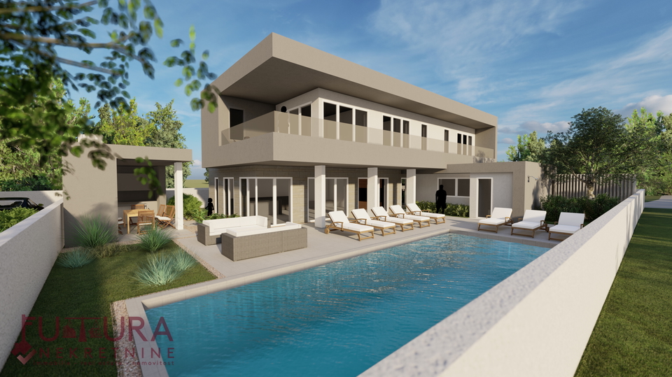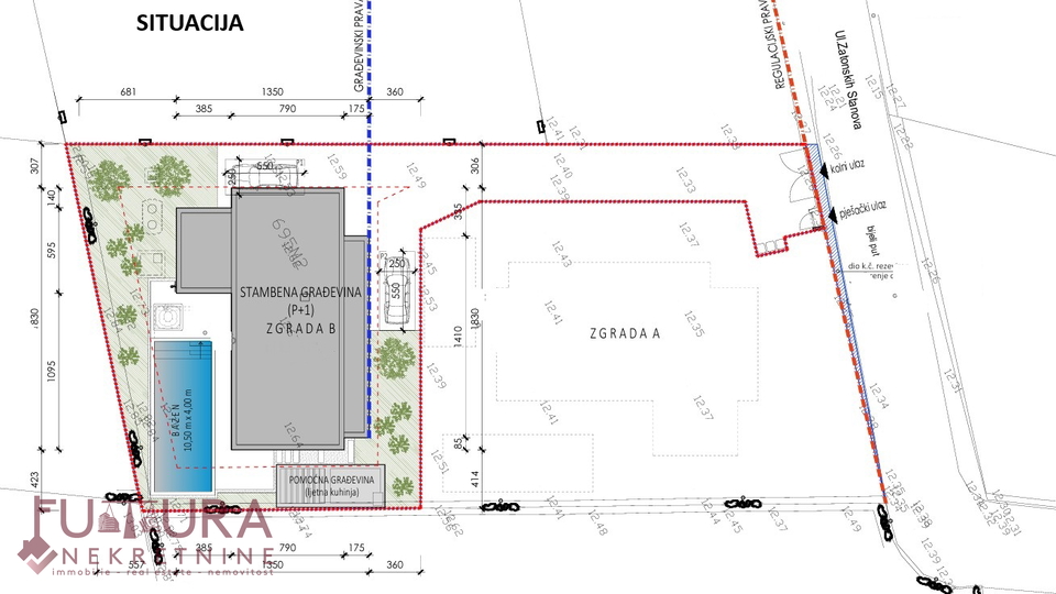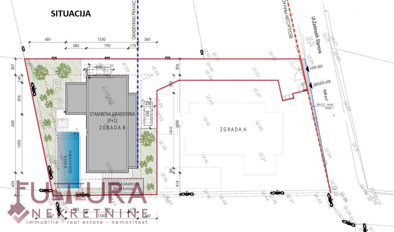 Zemljište posjeduje ishodovanu građevinsku dozvolu za izgradnju kuće katnice + pomoćni objekt + bazen.