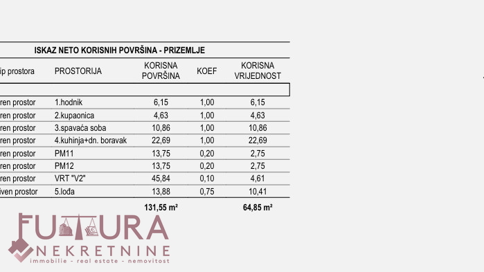 Posjeduje dva parkirna mjesta i vrt od 45,84 m2.