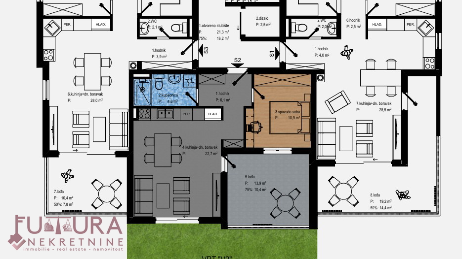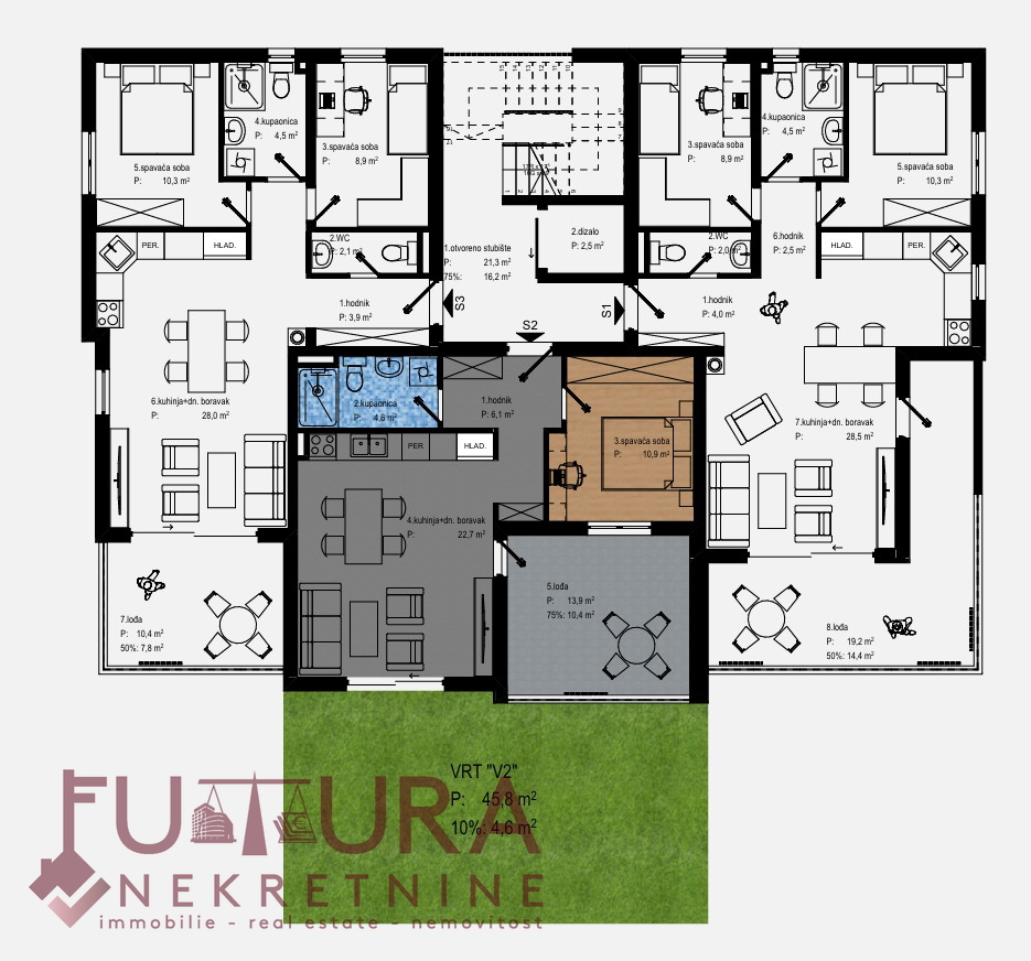Gledati tlocrt stan oznake S2.