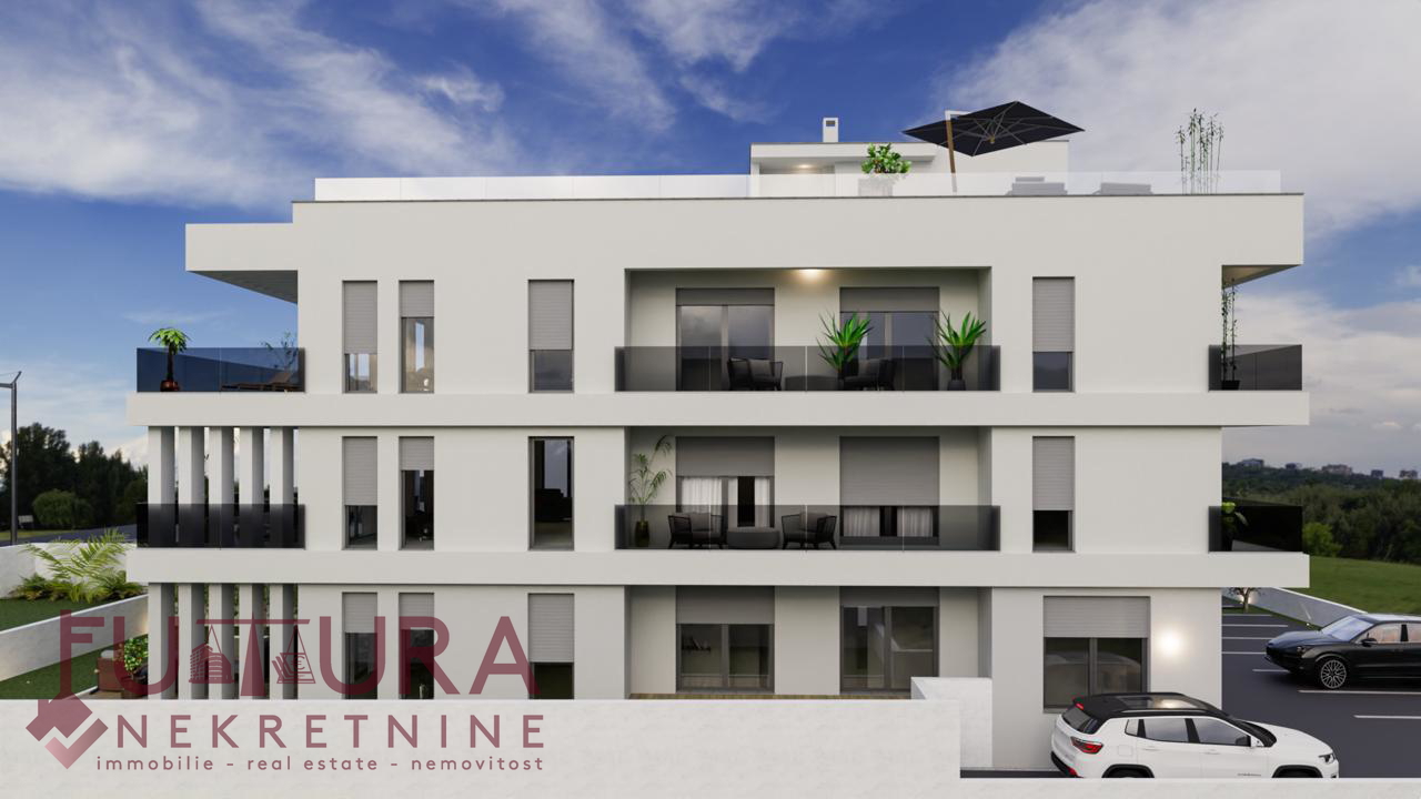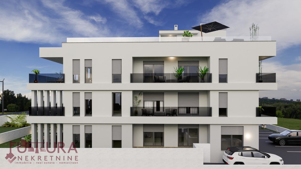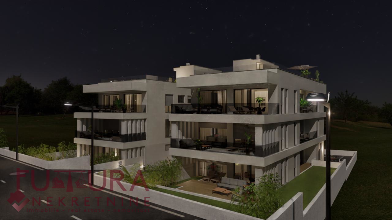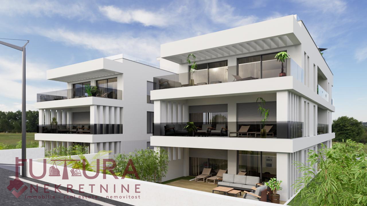 Zadar - Petrčane (Punta Radman), prodaje se dvosobni apartman od 105,90 m2 na drugom katu stambenog objekta u izgradnji, kvalitetna gradnja, podno grijanje u cijelom apartmanu. Planirano useljenje 06.2027. godine.
