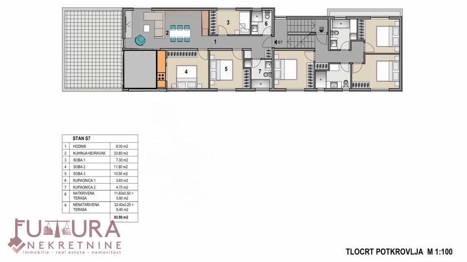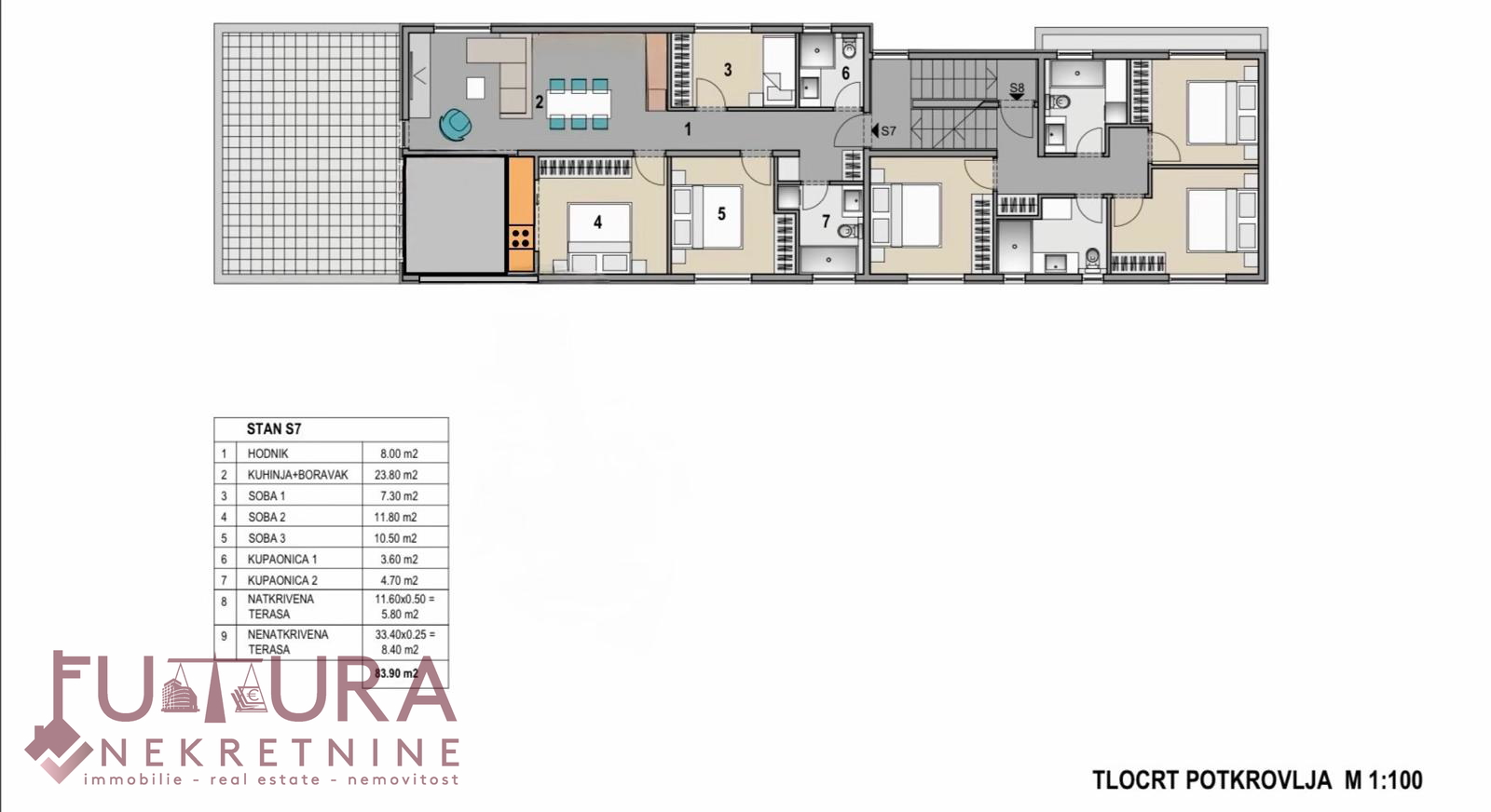 Tlocrt gledati stan oznake S7.