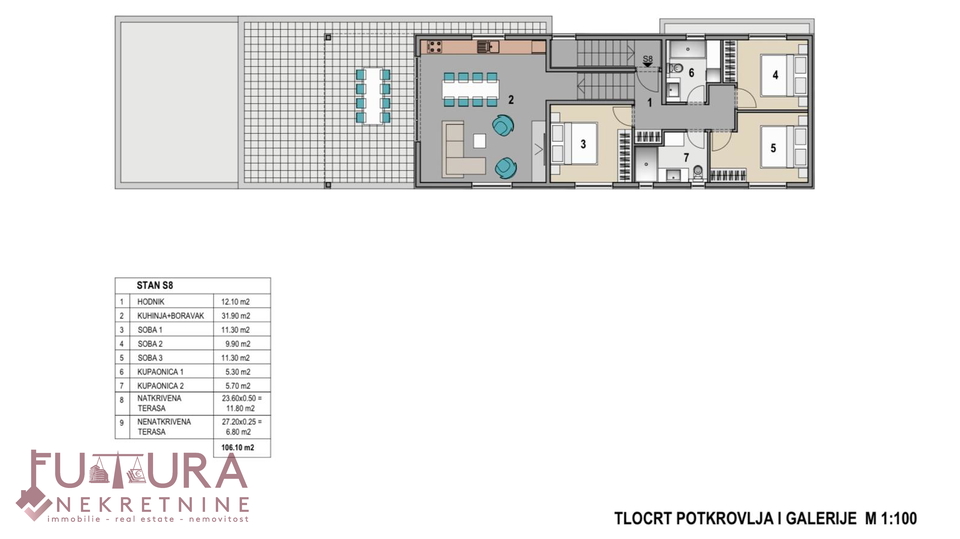 Tlocrt gledati stan oznake S8.