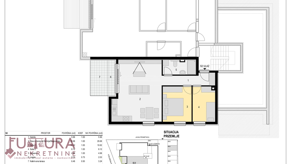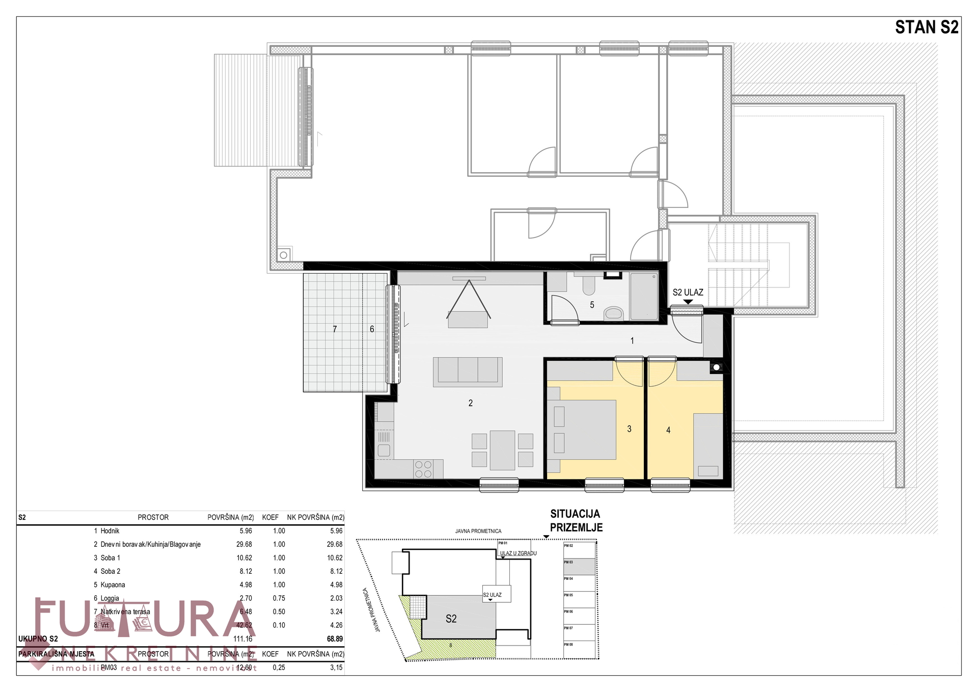Pag - Mandre, in vendita appartamento bilocale di 68,89 m2 al piano terra di un edificio residenziale con un totale di otto appartamenti costruito nel 2025, costruzione di qualità, vetri doppi Schuco in tutto l’edificio, ceramica Marazzi in tutto l’edificio, rubinetteria Hansgrohe, sanitari Laufen, ecc....