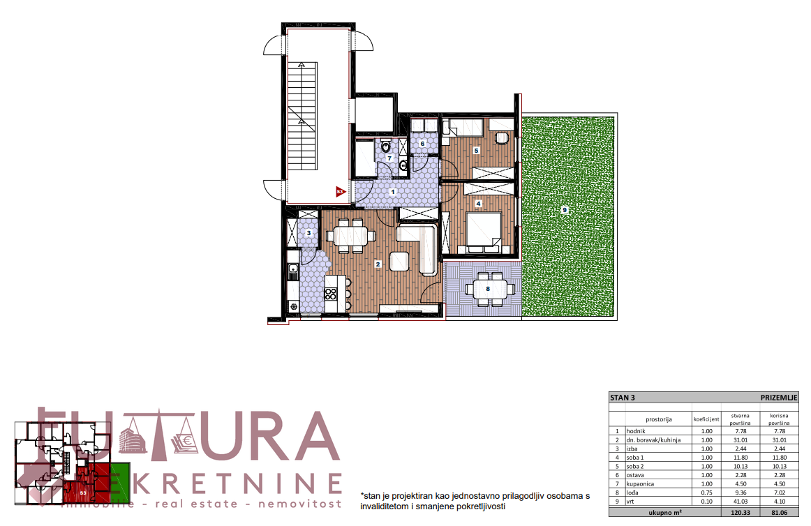 Zagreb - Sesvete (Gajišće), in vendita appartamento di 106,04 m2 al piano terra di un edificio residenziale in costruzione, con previsto termine di consegna a fine 2026.