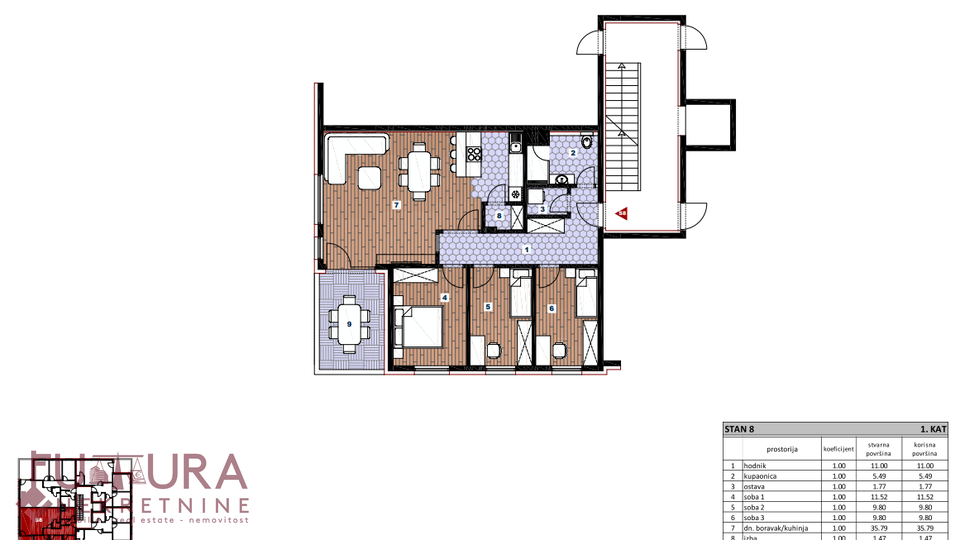La pianificazione è stata studiata in modo che tutto il necessario sia a portata di mano, in particolare per quanto riguarda la scuola primaria e secondaria, i centri commerciali (Kaufland, Konzum…), l’ufficio postale croato, il centro sanitario, le banche, le farmacie…