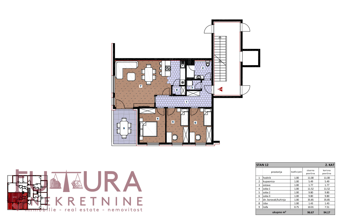La pianificazione è stata studiata in modo che tutto il necessario sia a portata di mano, in particolare per quanto riguarda la scuola primaria e secondaria, i centri commerciali (Kaufland, Konzum…), l’ufficio postale croato, il centro sanitario, le banche, le farmacie…