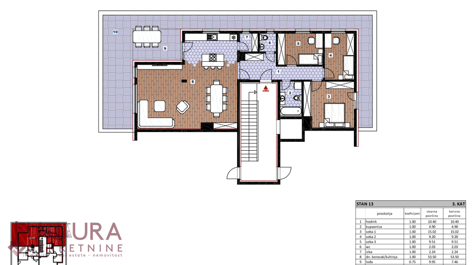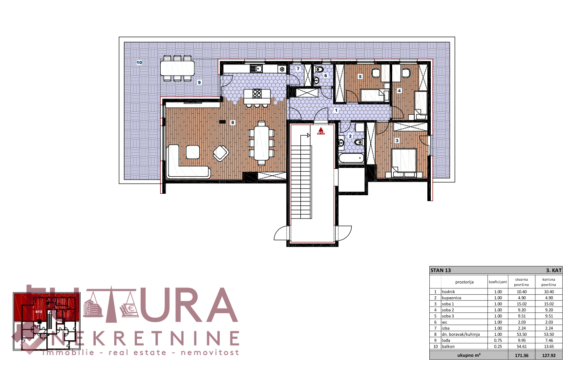 La pianificazione è stata studiata in modo che tutto il necessario sia a portata di mano, in particolare per quanto riguarda la scuola primaria e secondaria, i centri commerciali (Kaufland, Konzum…), l’ufficio postale croato, il centro sanitario, le banche, le farmacie…