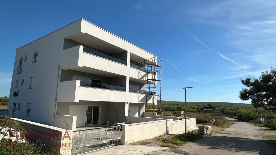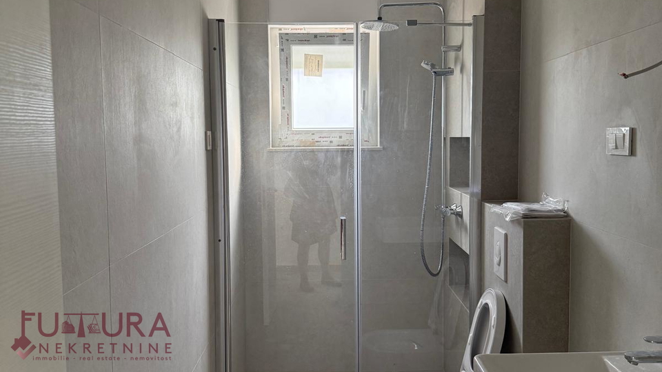 Паг - Повляна, продаётся двухкомнатная квартира площадью 67,37 м2 на втором этаже жилого здания, построенного в 2024 году, качественное строительство, использовались только самые качественные материалы, основная конструктивная система здания — железобетонная, стены из кирпича Porotherm profi, кондиционер для отопления и охлаждения в каждой спальне и гостиной, полы покрыты первоклассными покрытиями, первоклассная керамическая плитка и сантехника, ПВХ ISO столярка с электрическими жалюзи и москитными сетками для защиты от комаров и насекомых, большие остеклённые поверхности, ограждения террас — комбинация сплошных и стеклянных ограждений, противовзломная и противопожарная входная дверь, видеодомофон, спутниковое телевидение, все помещения имеют соответствующую тепло- и гидроизоляцию, а также звукоизоляцию, звукоизоляция межэтажной конструкции, тёплый пол в гостиной и ванных комнатах и т.д.