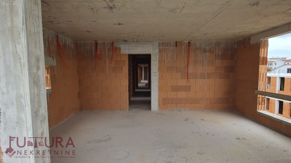 Паг - Мандре, продаётся трёхкомнатная квартира площадью 92,67 м2 на втором этаже жилого объекта с общей численностью шесть апартаментов в стадии строительства, планируемое заселение 06/2026. Качественное строительство.