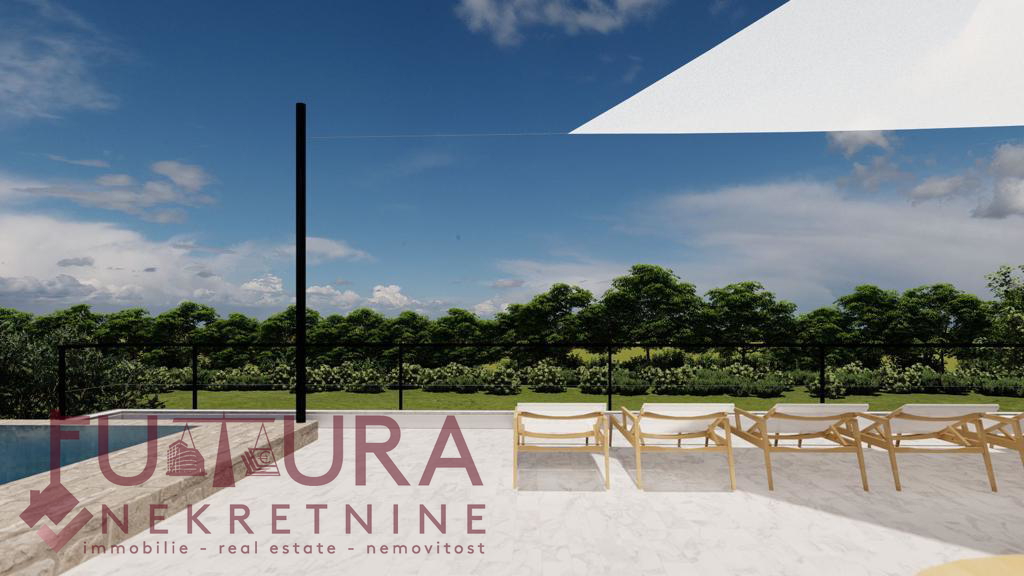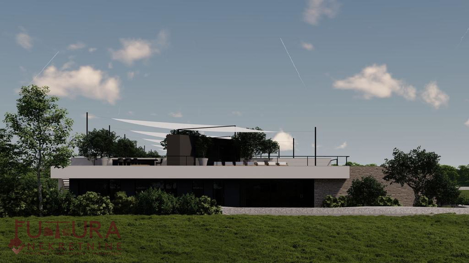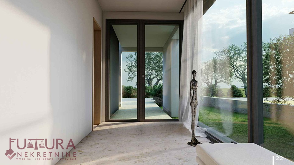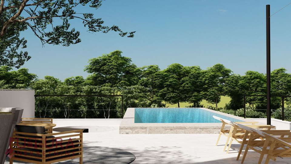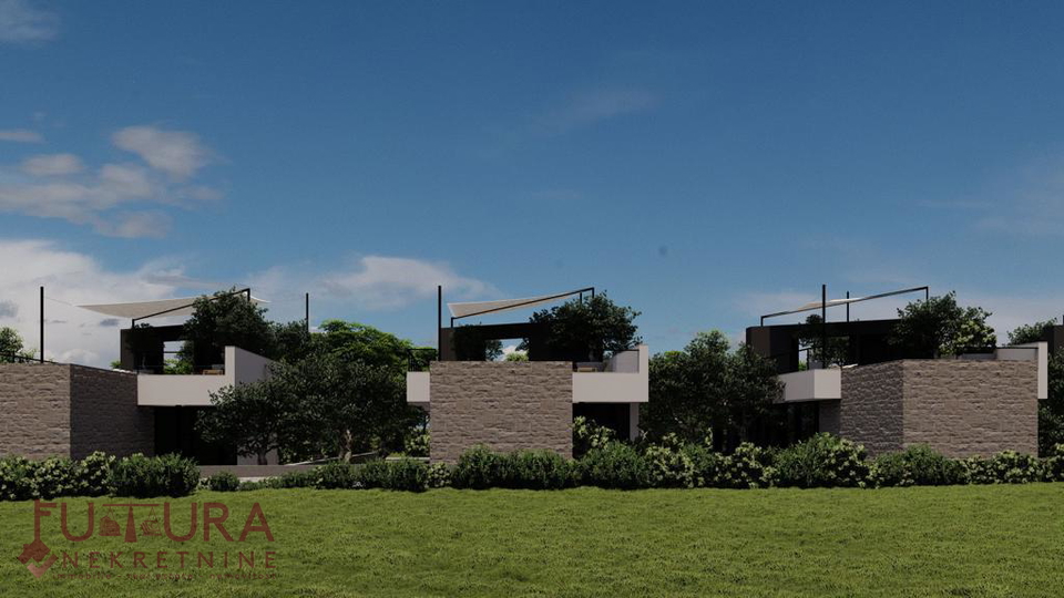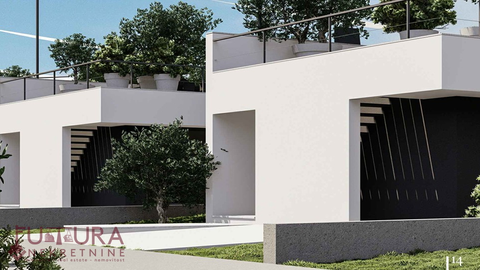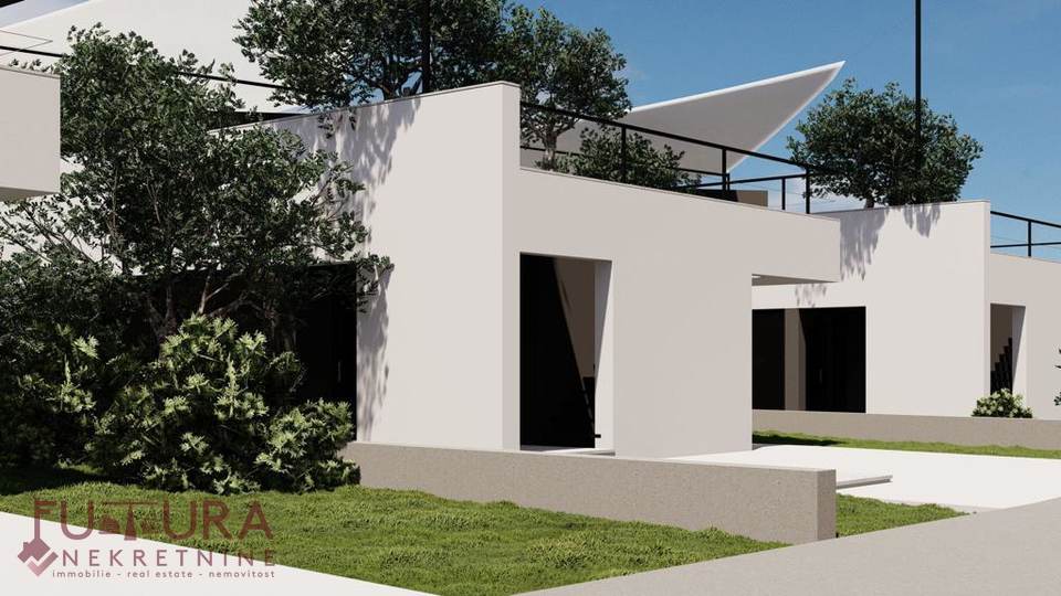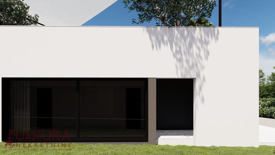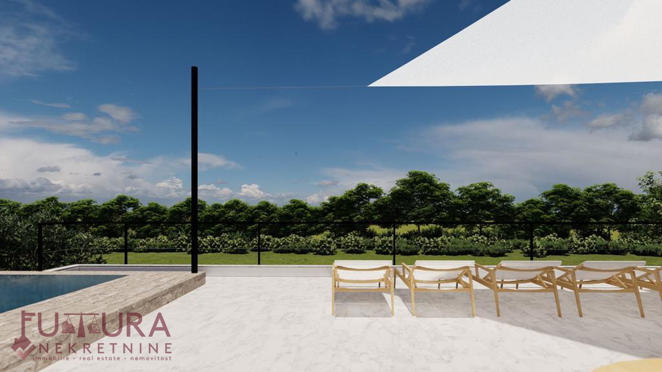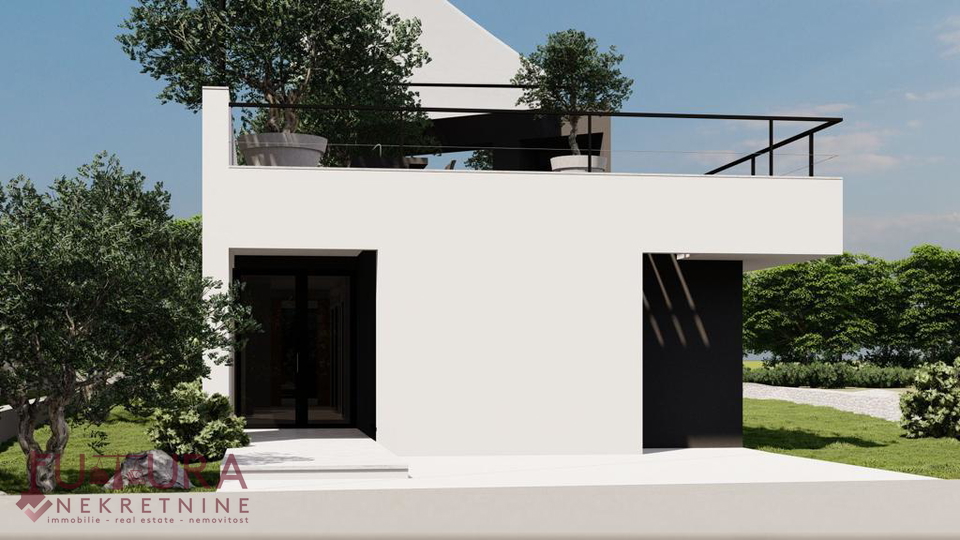 Задар - Драчевац Нински, продается отдельно стоящий одноэтажный дом с чистой жилой площадью 212,90 м² и участком площадью 293 м² в стадии строительства на земельном участке площадью 531 м². Высококачественное строительство. Планируемый въезд в конце 2026 года.