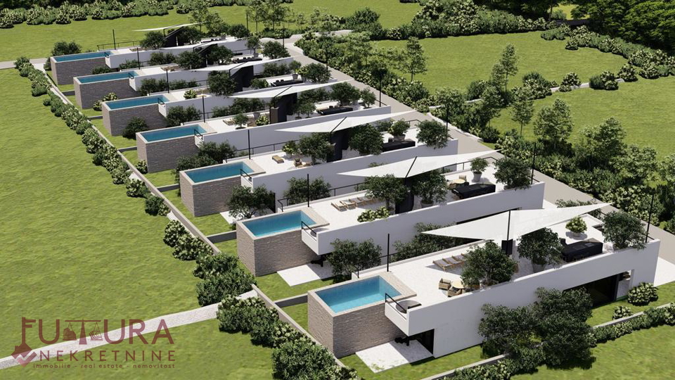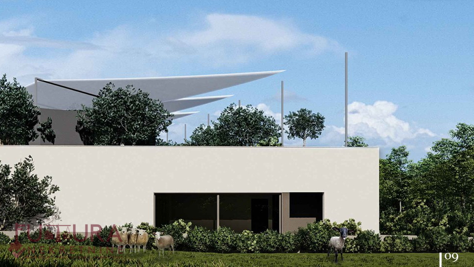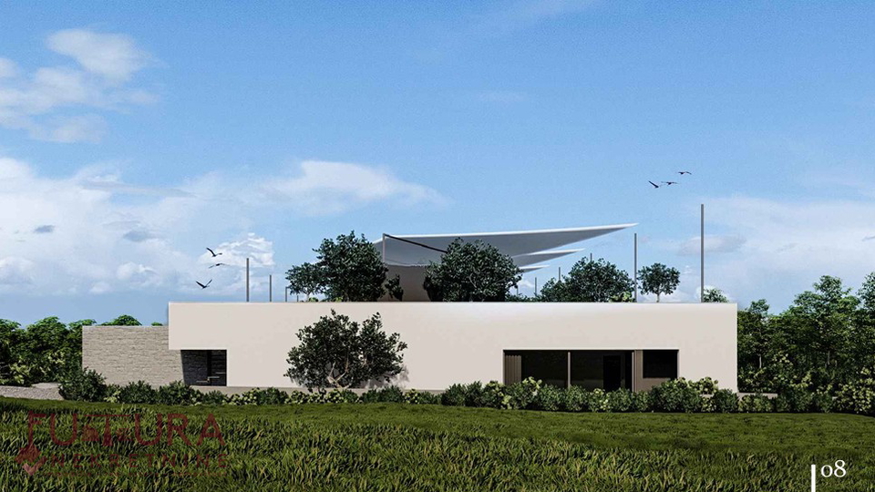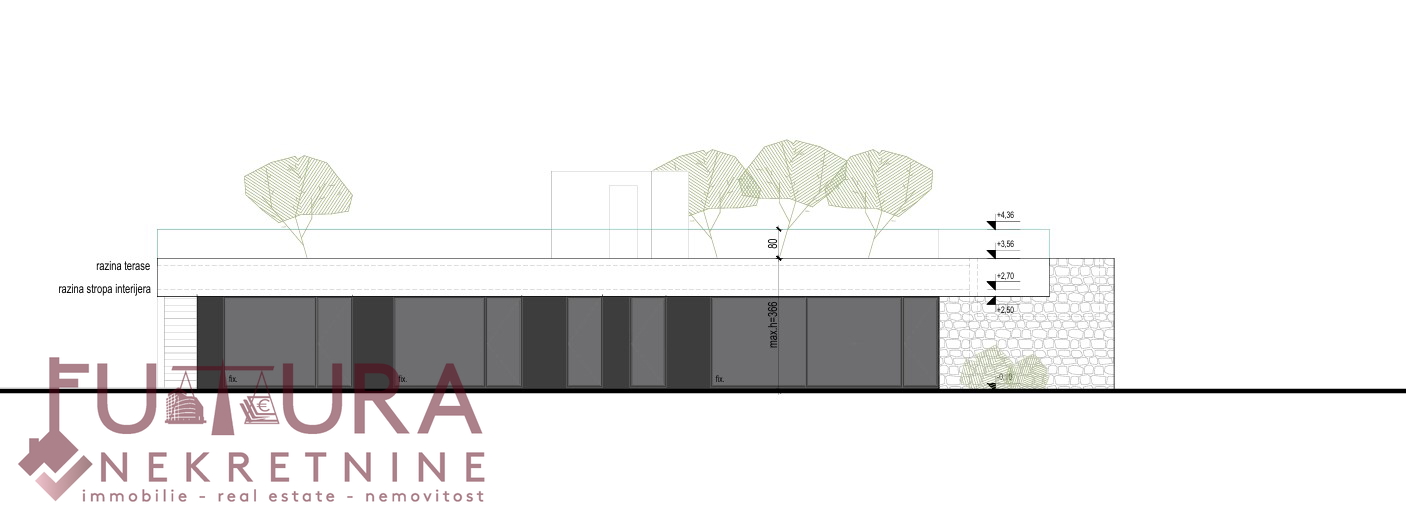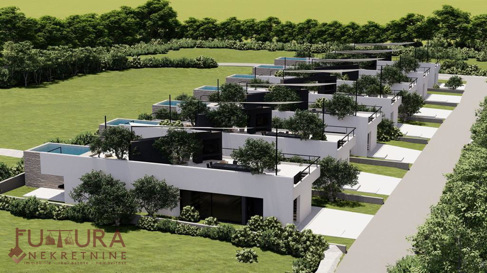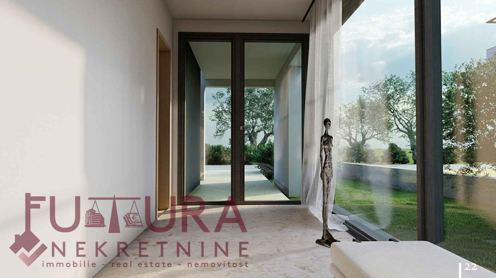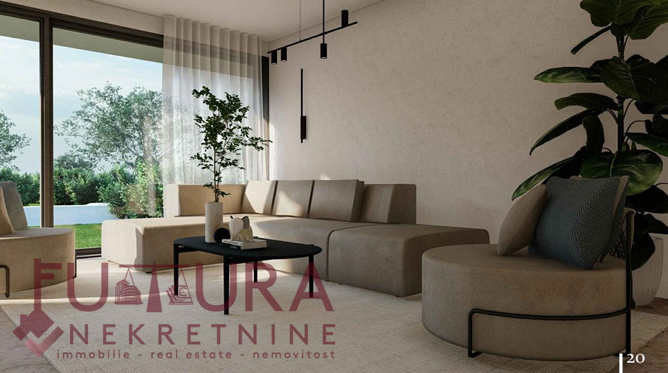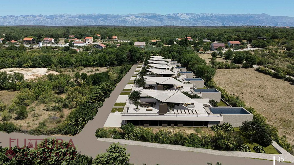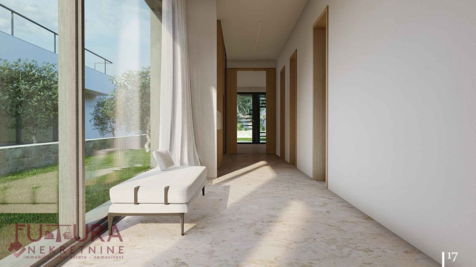 Задар - Драчевац Нински, продается отдельно стоящий одноэтажный дом с чистой жилой площадью 212,90 м² и участком площадью 293 м² в стадии строительства на земельном участке площадью 531 м². Высококачественное строительство. Планируемый въезд в конце 2026 года.