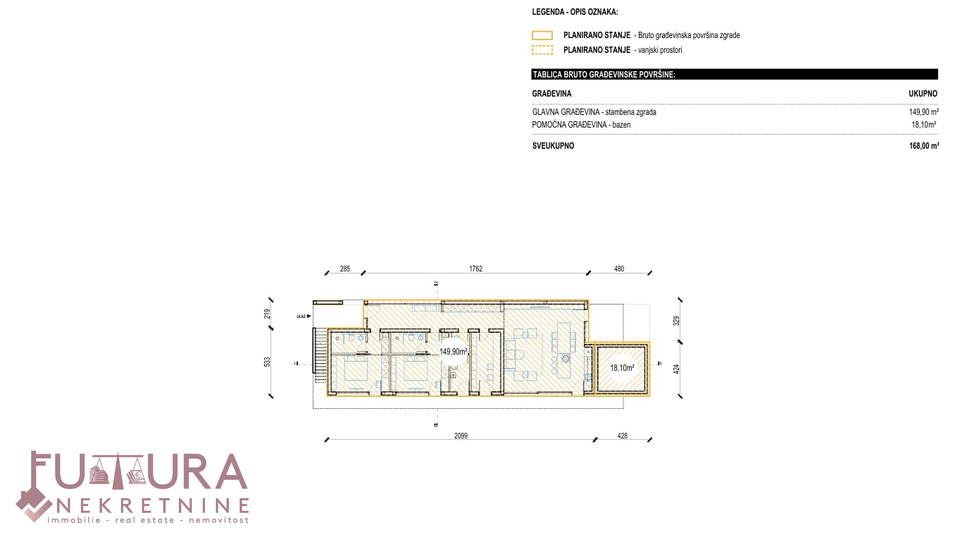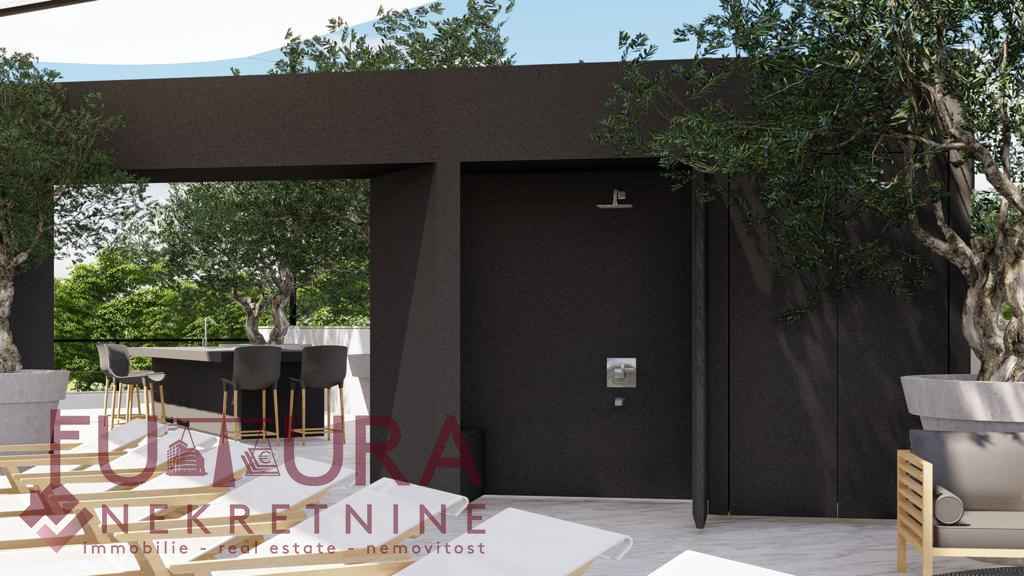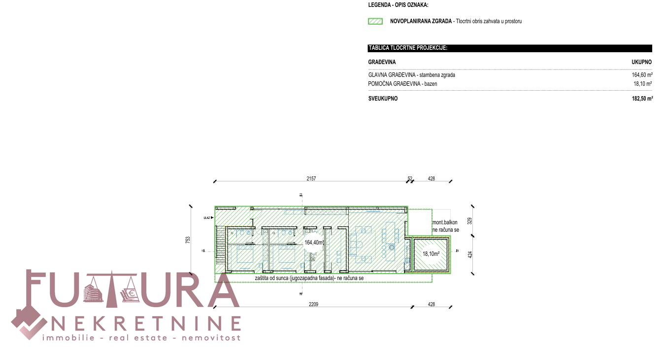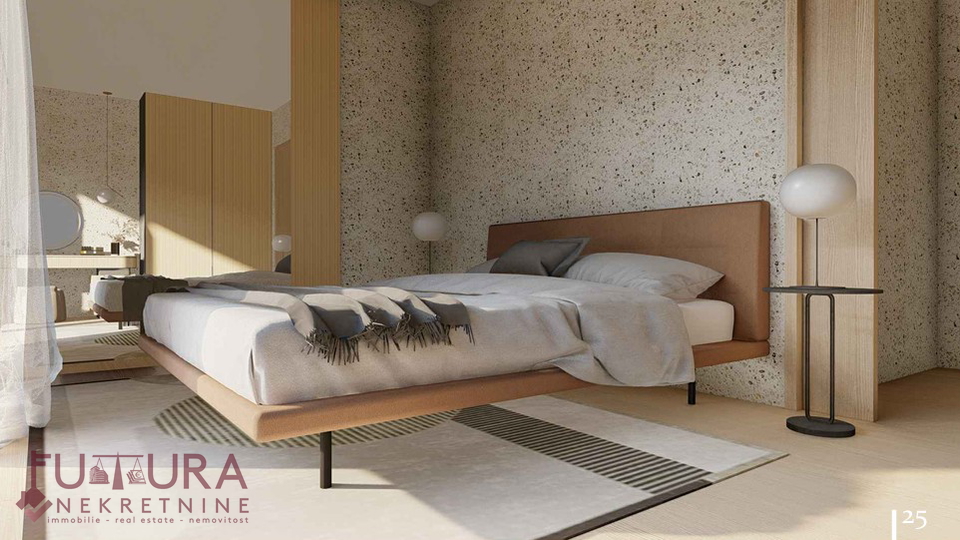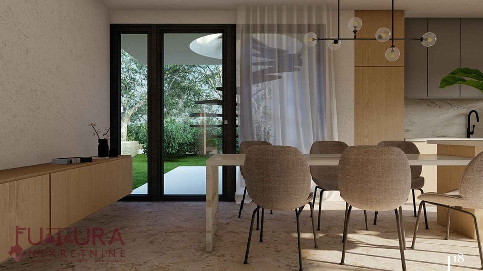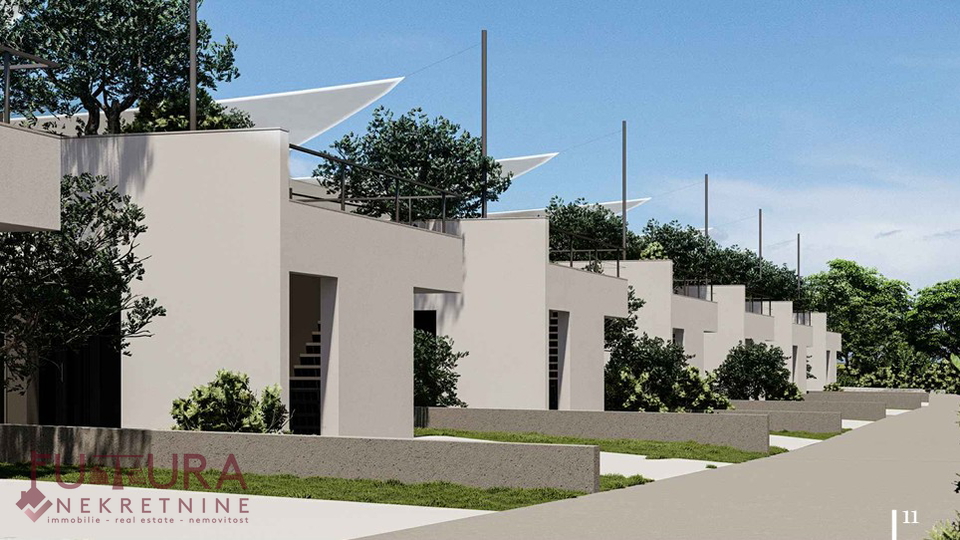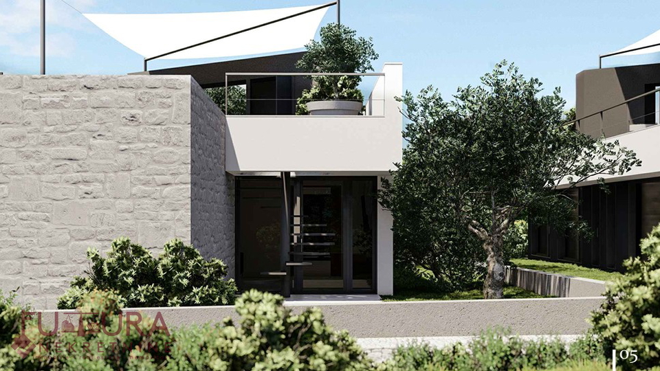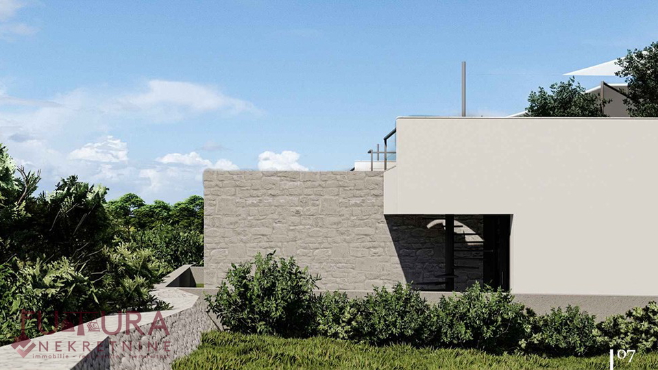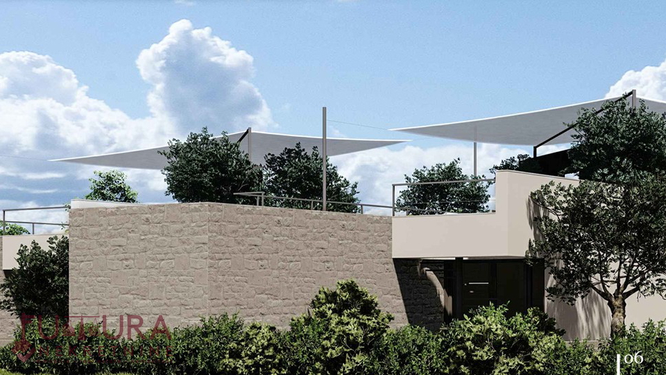 Задар - Драчевац Нински, продается отдельно стоящий одноэтажный дом с чистой жилой площадью 212,90 м² и участком площадью 293 м² в стадии строительства на земельном участке площадью 531 м². Высококачественное строительство. Планируемый въезд в конце 2026 года.