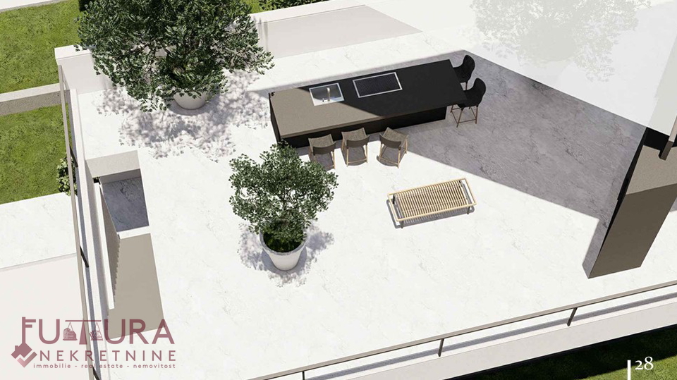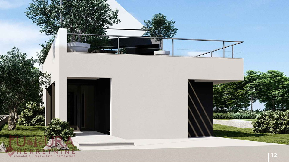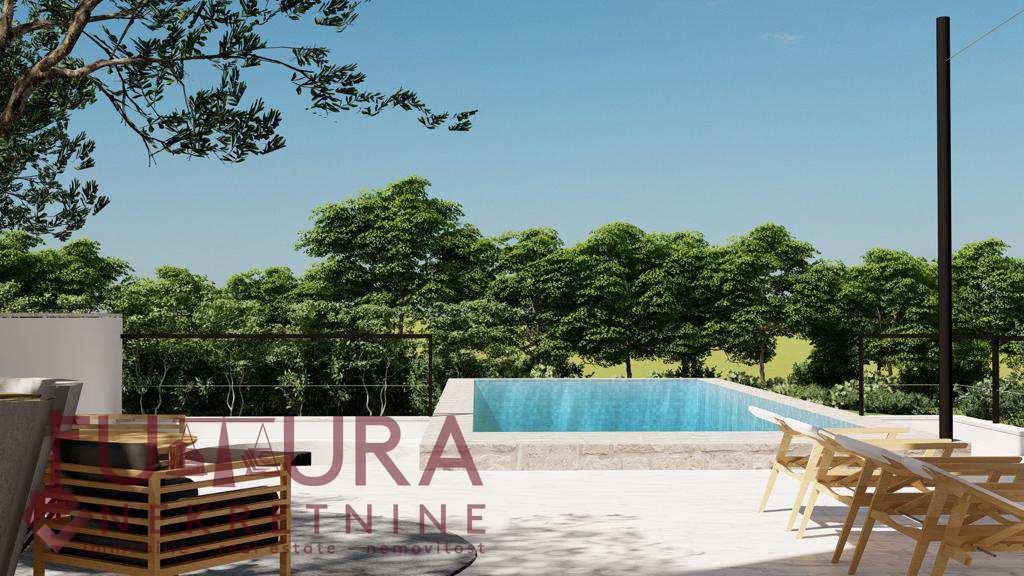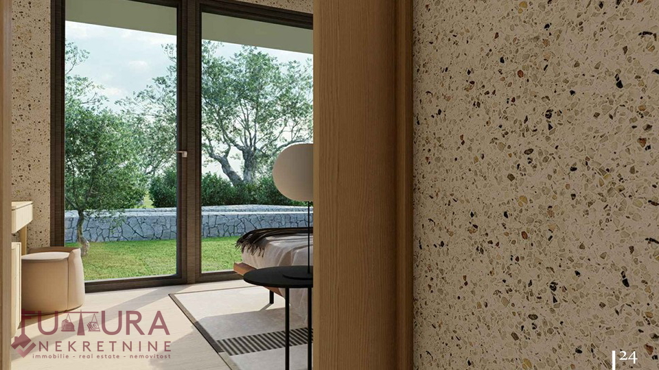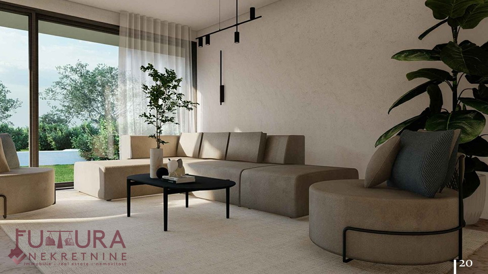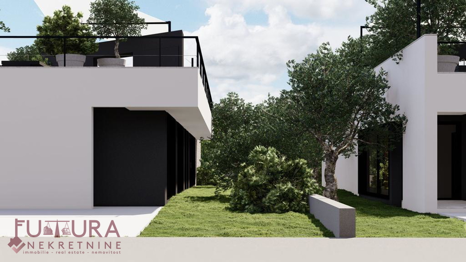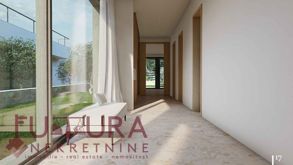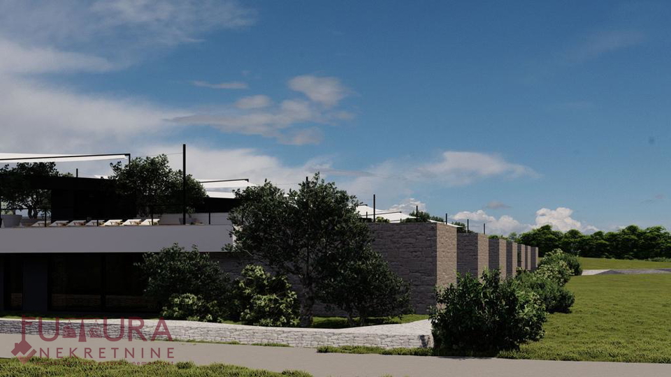 Задар - Драчевац Нински, продается отдельно стоящий одноэтажный дом с чистой жилой площадью 212,90 м² и участком площадью 293 м² в стадии строительства на земельном участке площадью 531 м². Высококачественное строительство. Планируемый въезд в конце 2026 года.
