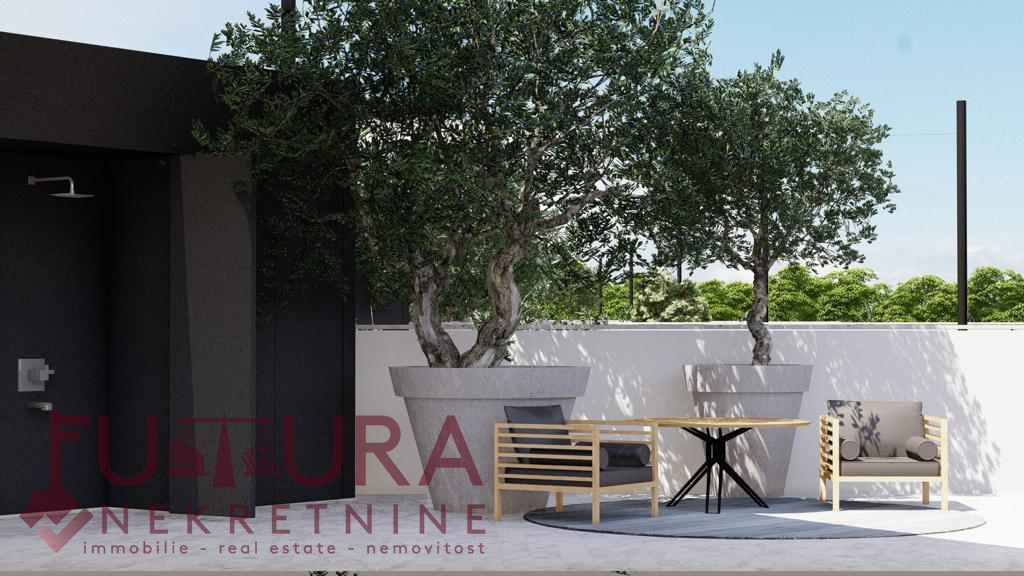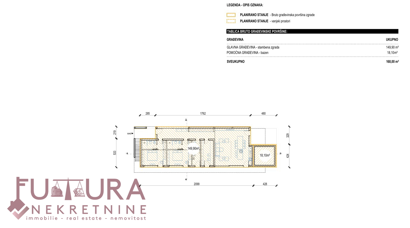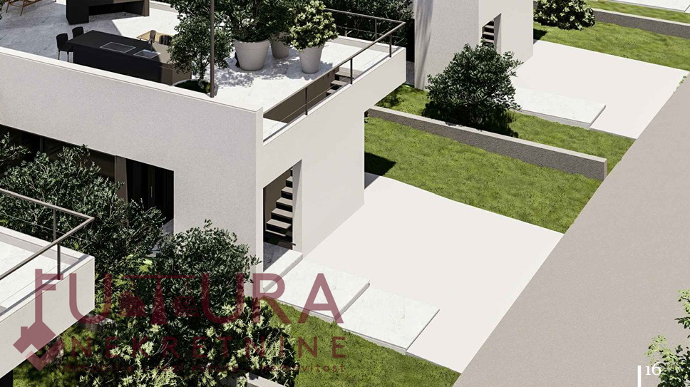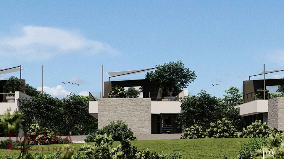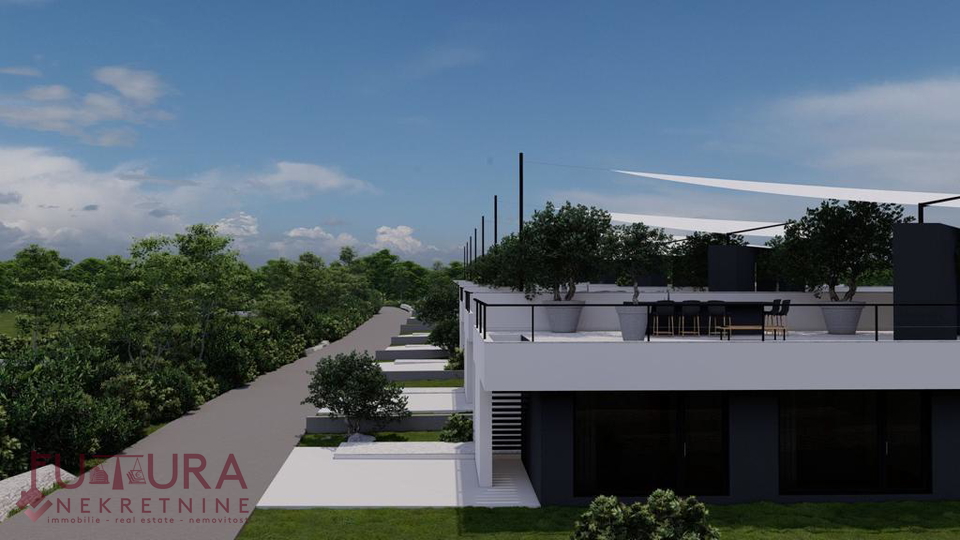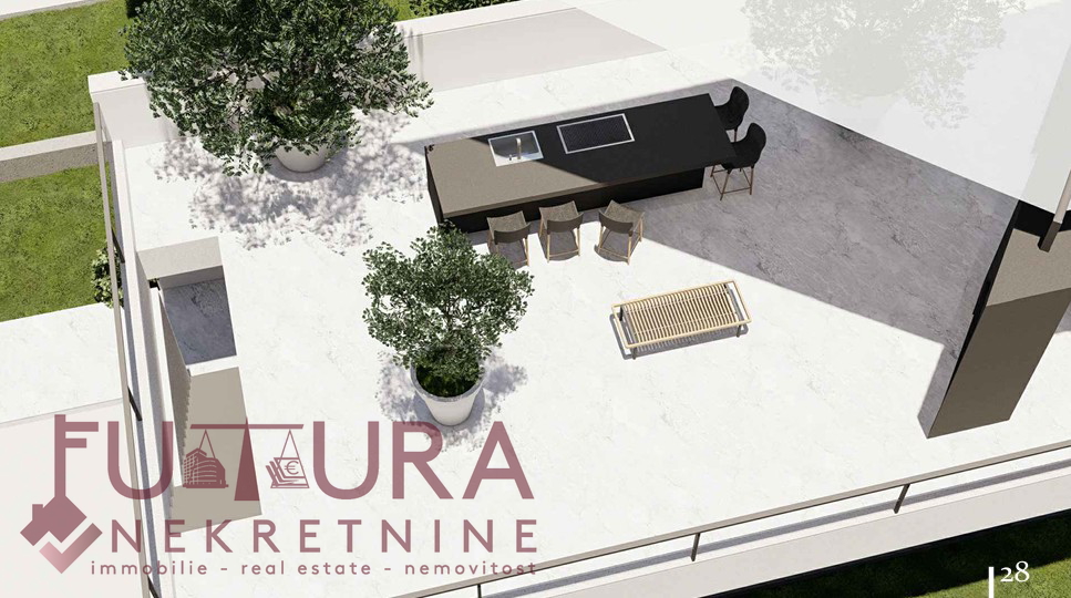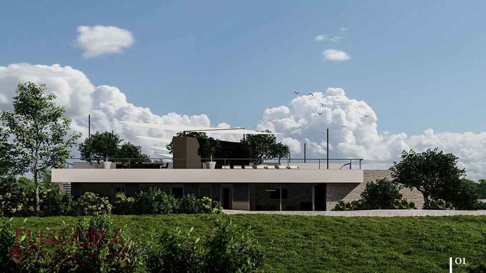 Задар - Драчевац Нински, продается отдельно стоящий одноэтажный дом с чистой жилой площадью 212,90 м² и участком площадью 293 м² в стадии строительства на земельном участке площадью 531 м². Высококачественное строительство. Планируемый въезд в конце 2026 года.