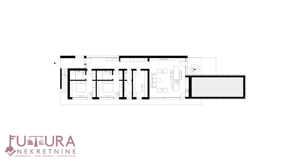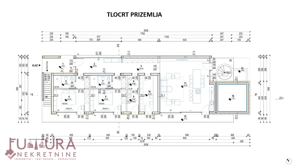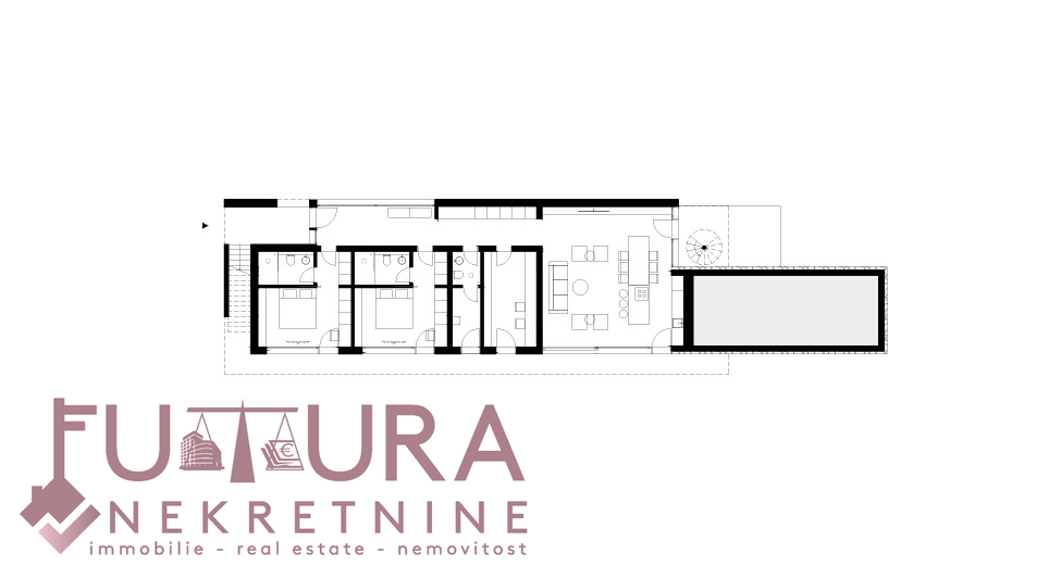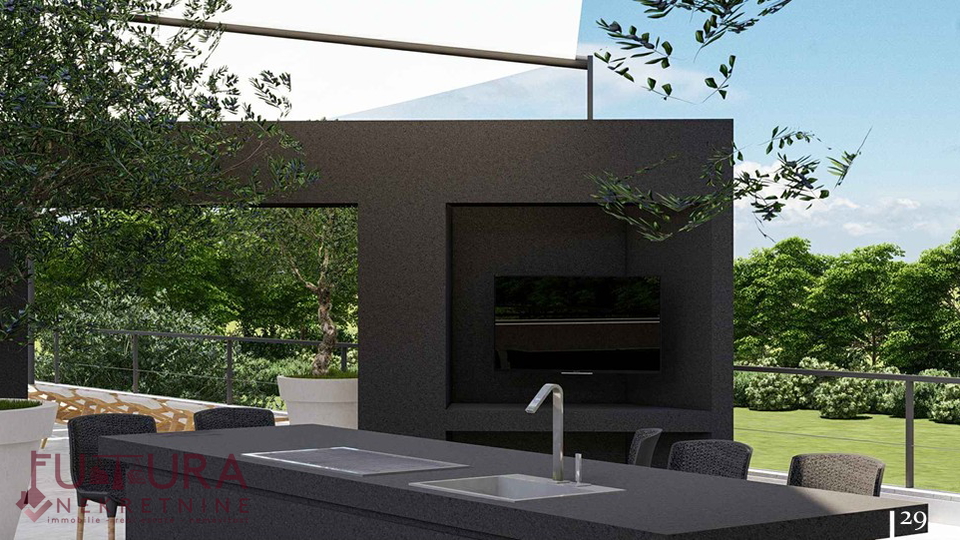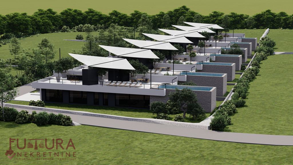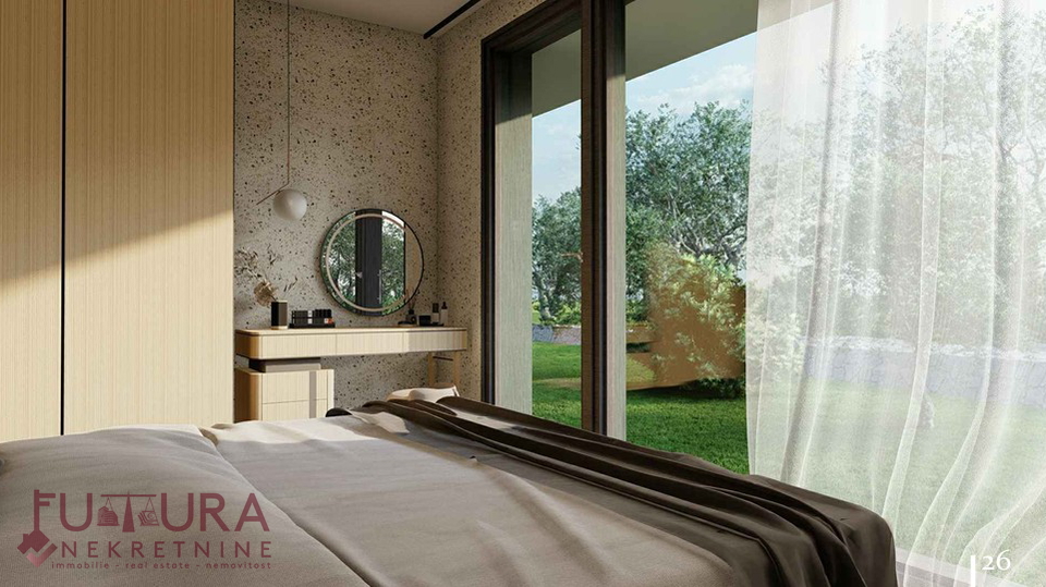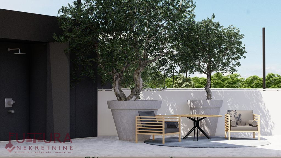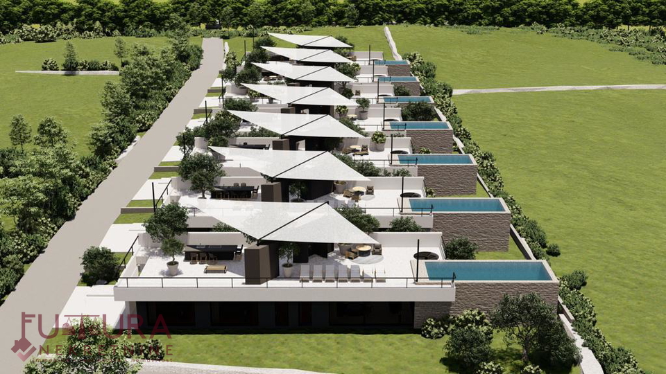 Задар - Драчевац Нински, продается отдельно стоящий одноэтажный дом с чистой жилой площадью 212,90 м² и участком площадью 293 м² в стадии строительства на земельном участке площадью 531 м². Высококачественное строительство. Планируемый въезд в конце 2026 года.