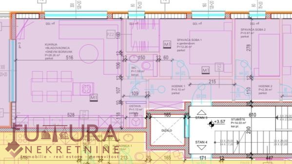 Задар - Вишњик, продаётся трёхкомнатная квартира площадью 92 м2 на первом этаже жилого здания, построенного в 2025 году, качественное строительство.