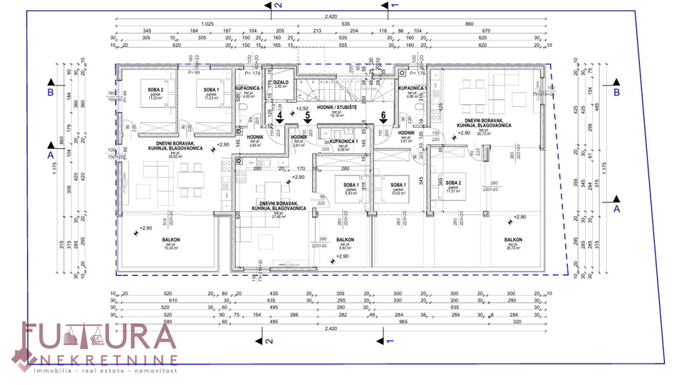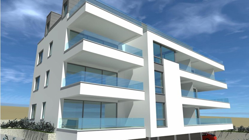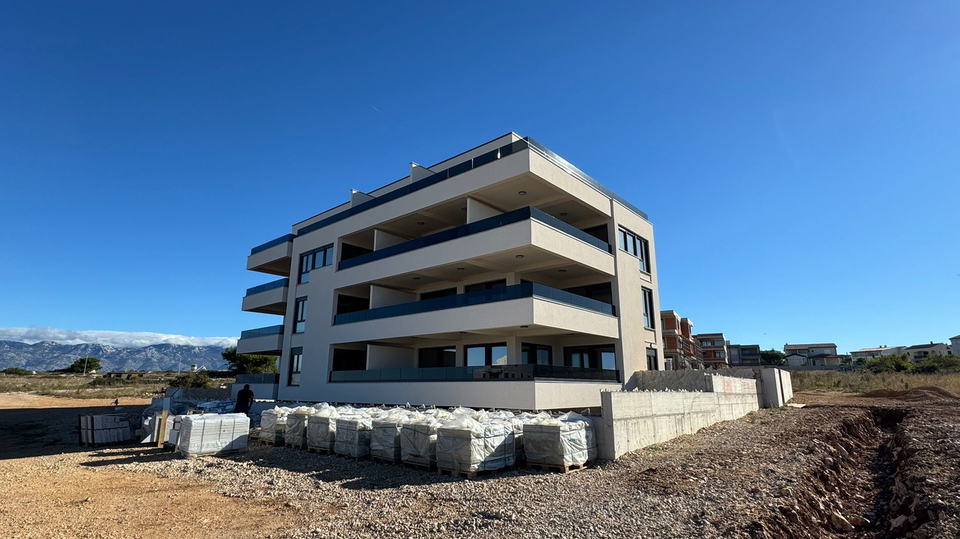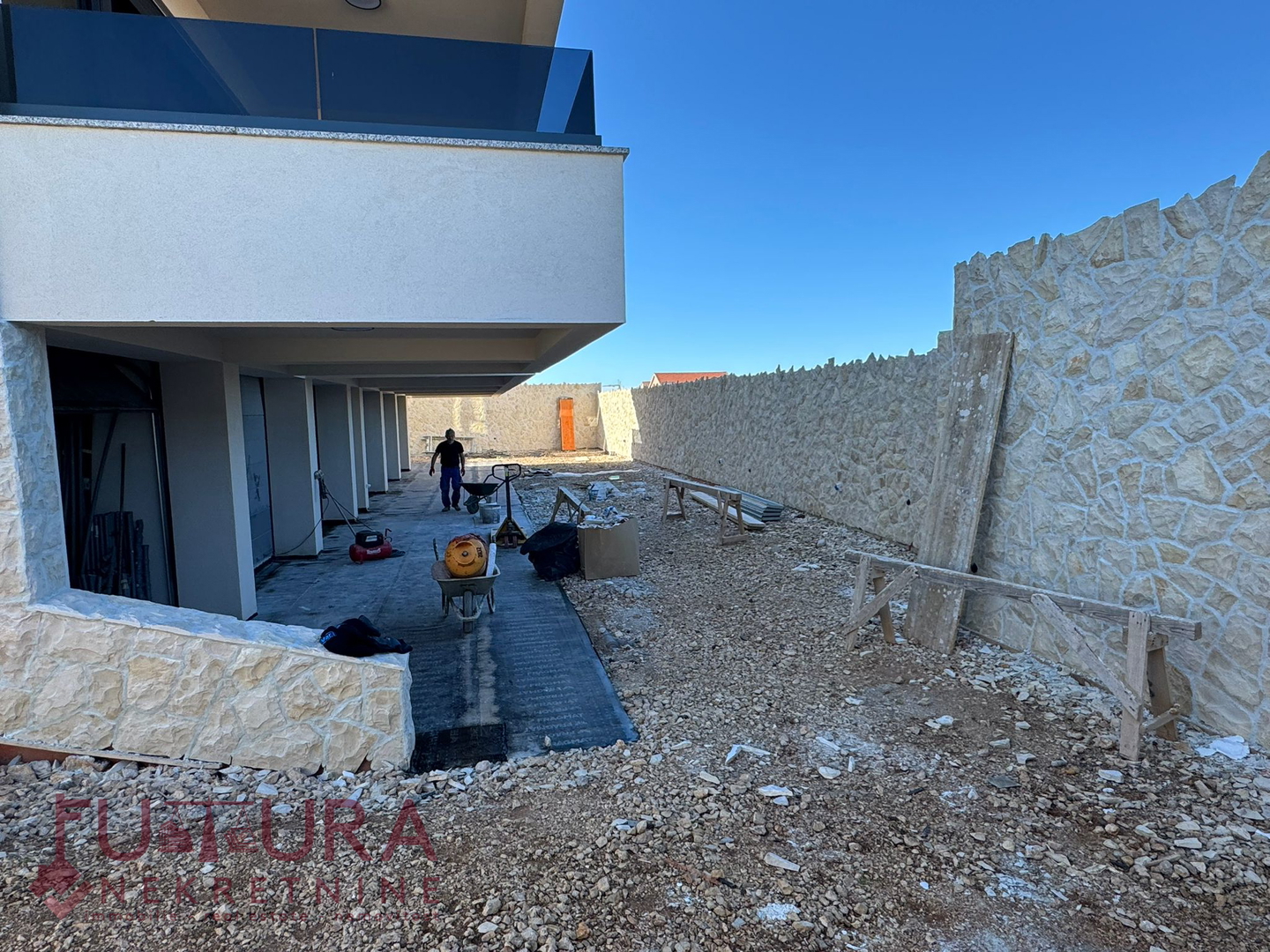 Паг - Повляна, продается двухкомнатная квартира площадью 57,55 м2 на первом этаже жилого здания с общим количеством десять квартир, построенного в 2025 году.