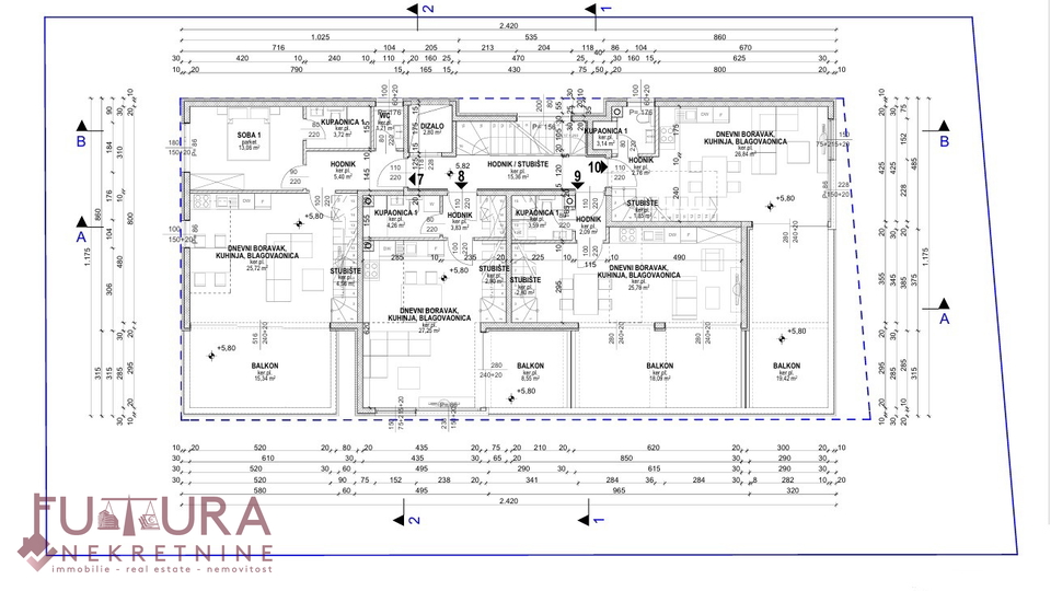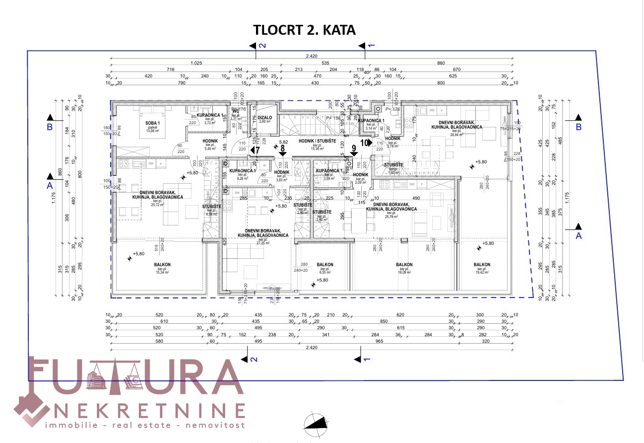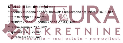 Паг - Повляна, продаётся двухэтажный двухкомнатный апартамент площадью 67,73 м2 на втором этаже жилого здания с общей численностью десяти апартаментов, построенного в 2025 году.